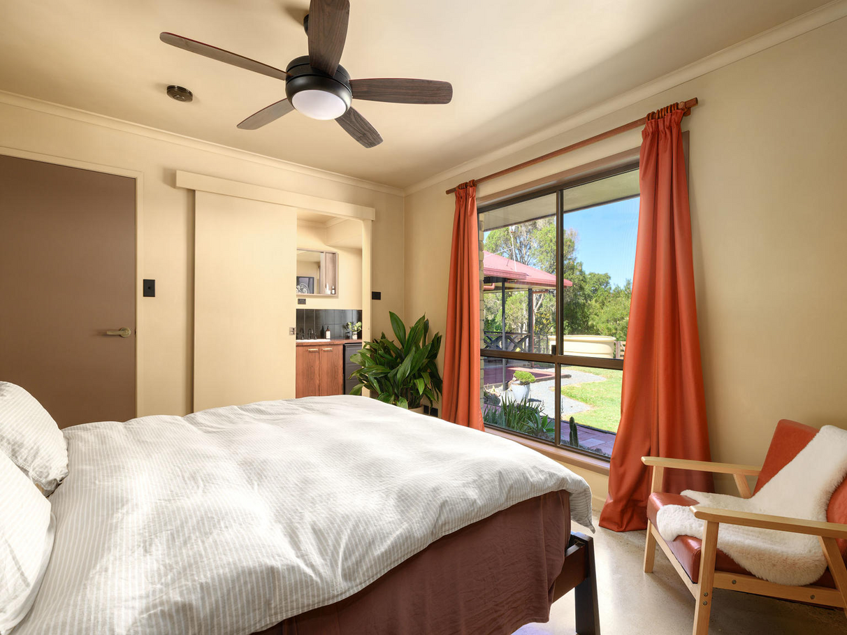 • NOT SHOWN IN PICTURES: Private outdoor area across the bridge – shaded, fully fenced, water supplied from the tanks, own private entrance, ideal for entertaining, caravans, or a hipcamp setup