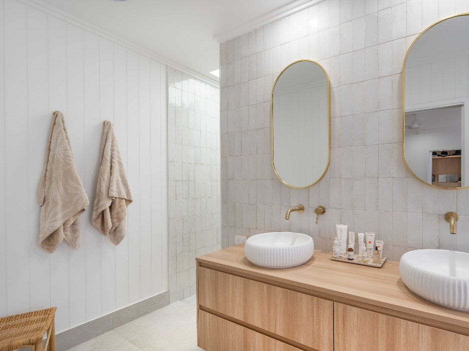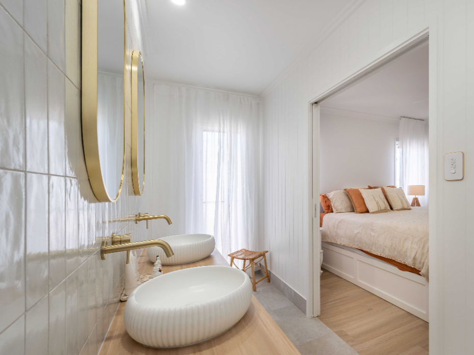 Neutral tones create a harmonious backdrop, allowing your personal style to shine. Whether you prefer minimalist chic or cozy warmth, this canvas awaits your touch. The home boasts exquisite handmade Italian tiles & Gold ABI tapware throughout adding elegance and character