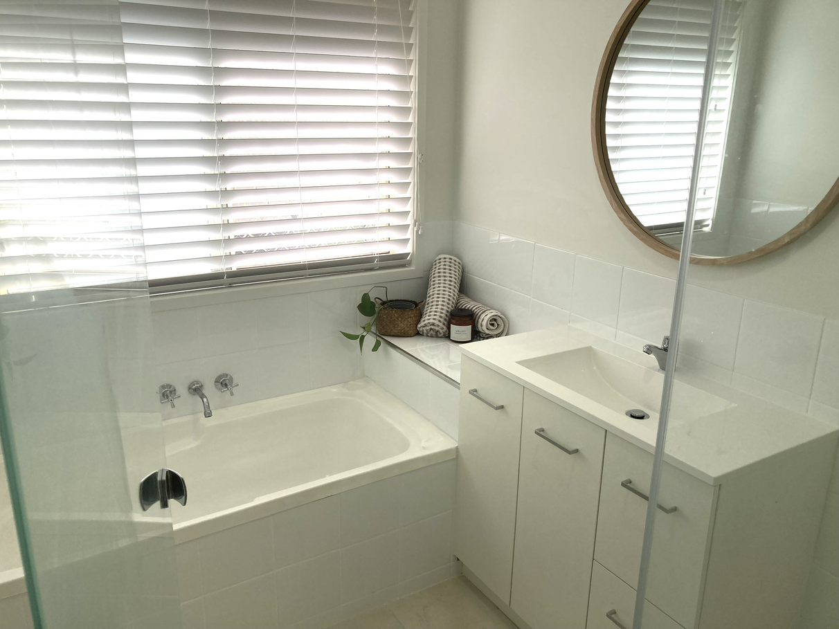 There are three generous sized bedrooms all with built-ins and ceiling fans. The bathrooms is spacious and well appointed with a large shower and bath. It has dual access from the master and the hall with a separate toilet. The laundry has an excellent sized linen cupboard for storage.