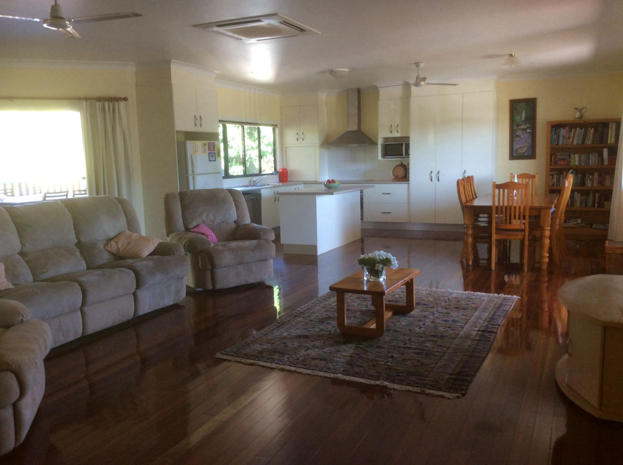 • Large open plan living area with polished timber floors
