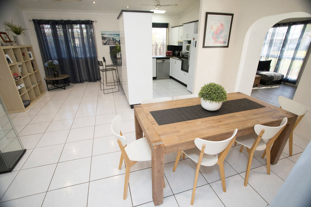 Showcasing fresh neutral tones and quality fixtures and fittings complemented by new vinyl plank flooring emphasising space and light throughout. The clever floorplan flows effortlessly together yet with separation in between. Comprising of 4 bedrooms and 2 bathrooms, the living area flows out to the enormous undercover alfresco entertaining area. Lounge poolside and enjoy the tropical gardens while the kids splash about in the water this summer! Other features include 5kw solar panels and a two-car garage.