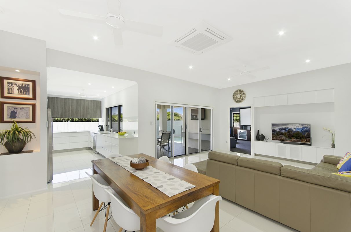 The home boasts a generous Media Room, Large Laundry, concrete path around entire home, formal pool, designer kitchen with Walk in Pantry, high top hat ceiling to main living area, custom cabinetry throughout, security system and much more.