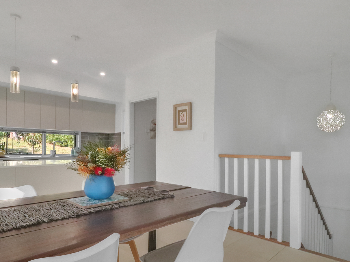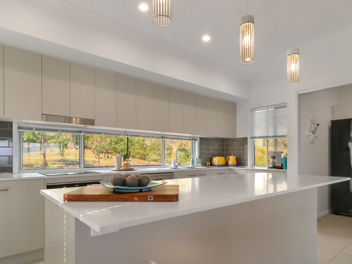 4 spacious bedrooms with built-in robes, open plan living, 2 huge 9.3 x 3.0 metre balconies ,walk in pantry with large fridge space, stone tops to all cabinetry, 6 metre hanging space walk through robe, main bedroom with free standing bath to soak up the views. Feature stair case with open risers and solid timber steps. Ceiling fans and reverse cycle air conditioning