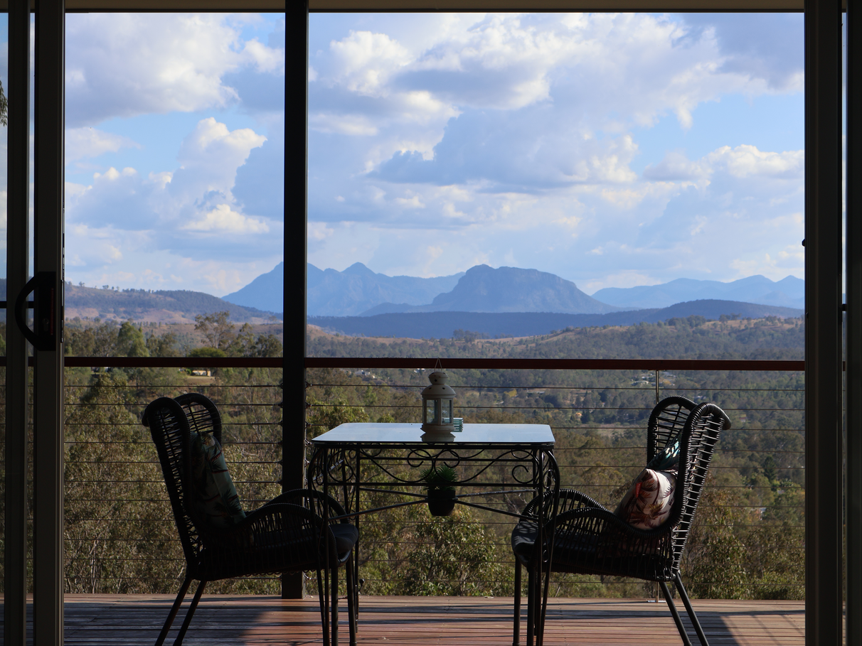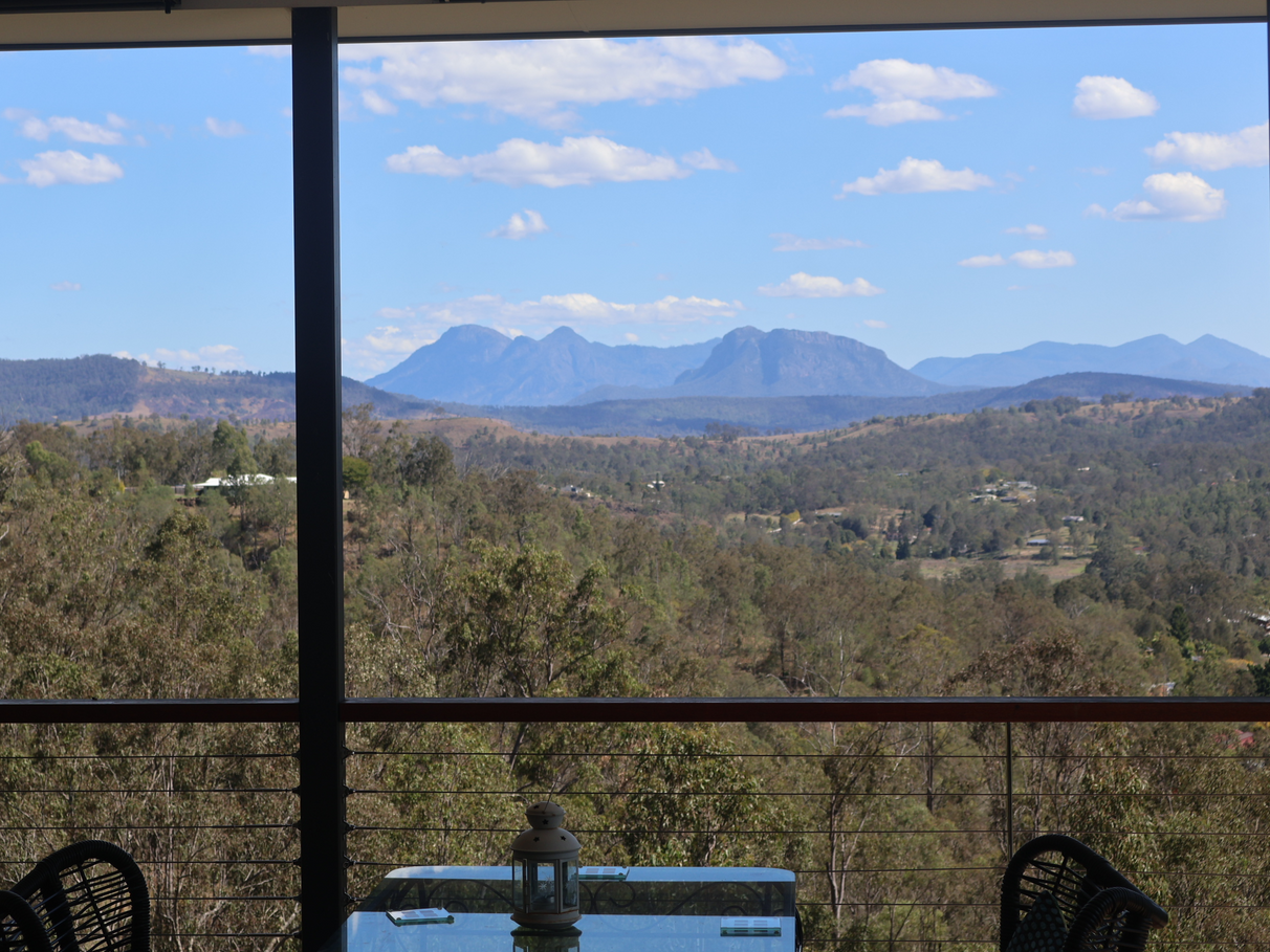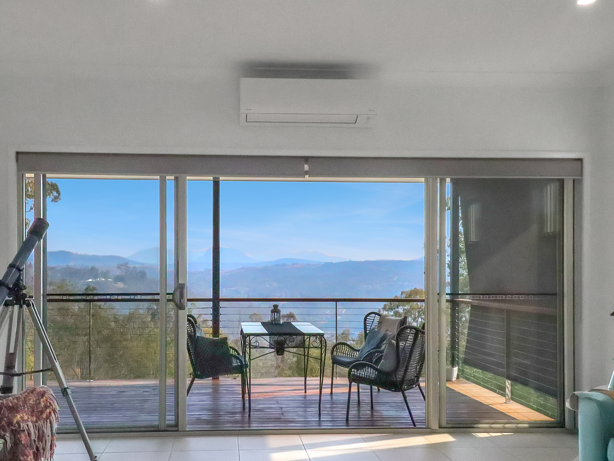 Home presents as new as built in 2023 and rarely occupied by its retired owners, commanding spectacular views of mountain ranges in Qld and NSW.