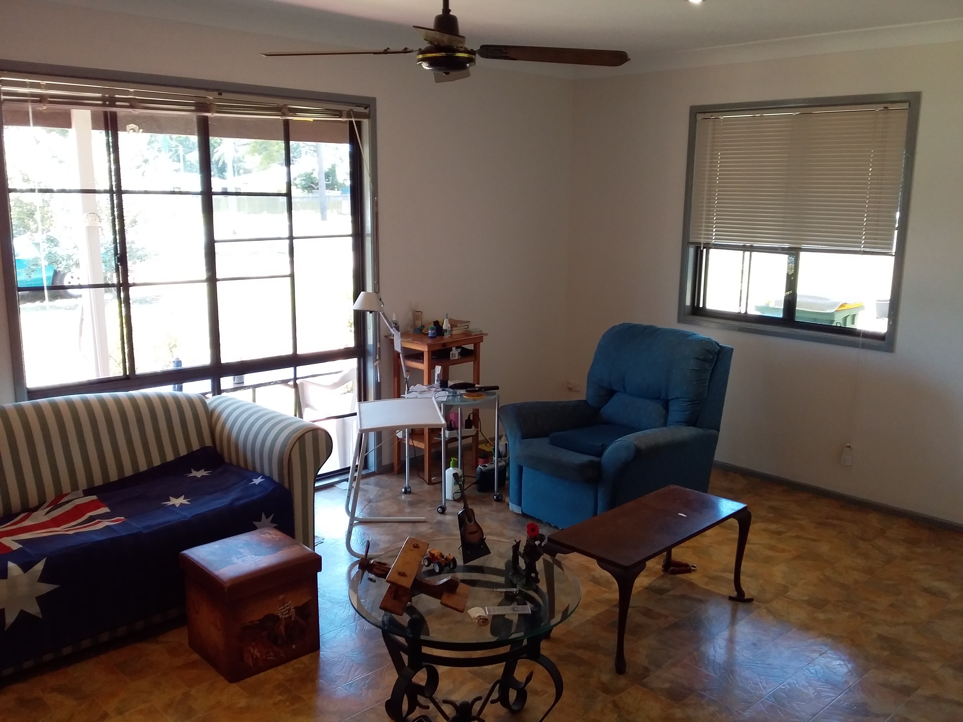 3 bedroom lowset with large add on room [bed-study-office] own entry and exit .Home is on 2 blocks[seperate titles]total land 1272sq mts All fresh paint inside and out Insuiated and 3 whirly birds.all rooms. rooms vented with fans.New carpet in bedrooms.all bedrooms have screens and sliding doors to acess patio out to low maintenece gardens.large wide corridoor up centre has 2large built in cupboards.Large modern kitchen double sink plenty of cupbord space rangehood 4burner gas stove electric oven ;walk in well lit plentry of shelves pantry exhaust fans.Smoke allarms.Bathroom has deep bath seperate shower exhaust fan and heater seperate toilet and exhaust fan lots of storage under wash basin.Large laundry with tub.2 car garage bench and tiltadoor concrete slab 4 boat or traler or water tank.LED lights through out.Garden shed.manderin tree grape fruit .