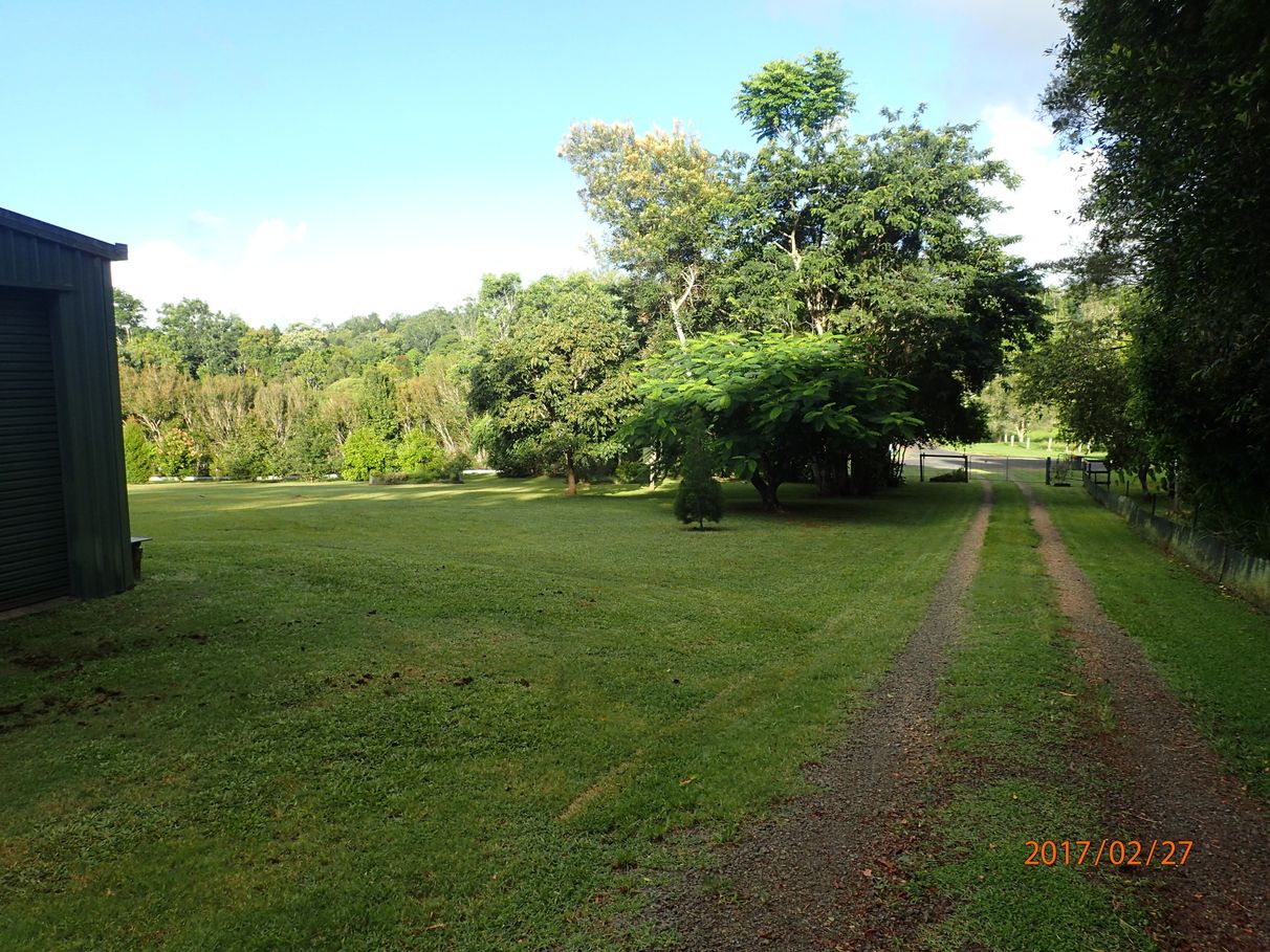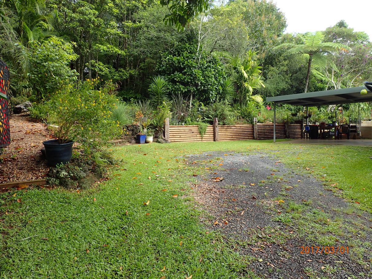 The property perimeter is fully fenced, and the yard around the houses are also fenced. Along with fruit trees and a vegetable garden, there are established landscaped gardens and pockets of rainforest directly behind the house, with an abundance of native wildlife including King Parrots and a local visiting Tree Kangaroo.