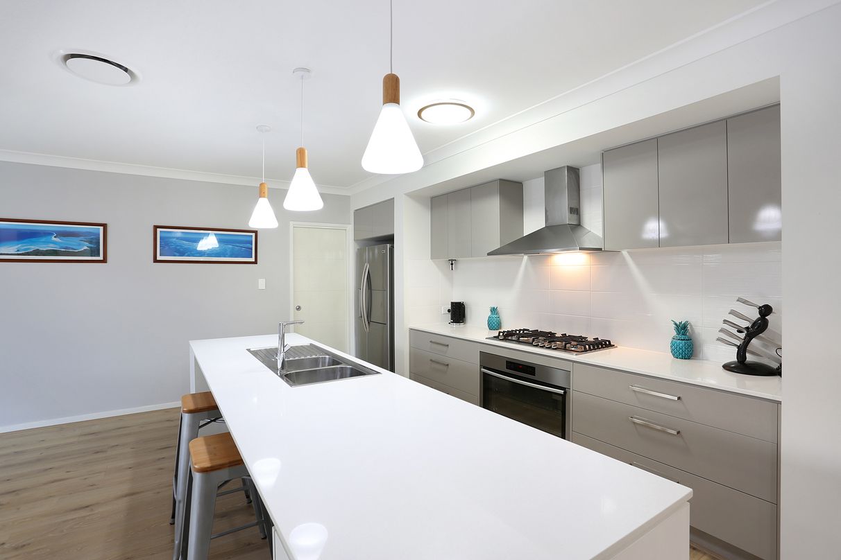 The residence has an immaculate leafy front garden, manicured lawn and a beautifully designed brick and weatherboard facade inviting you into the luxurious open plan living. The generous sized modern kitchen includes quality appliances, a long island bench/breakfast bar and plenty of cupboard space to ensure there is enough room for the whole family to use.