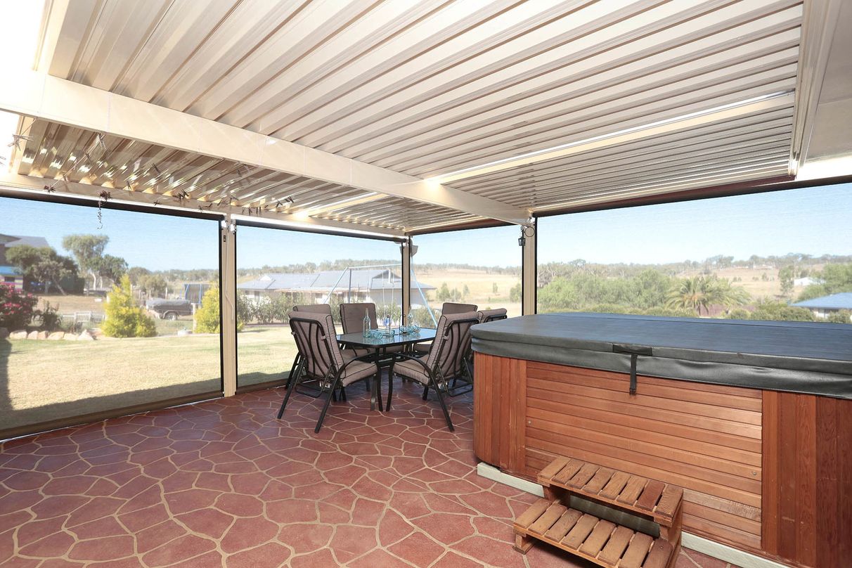 Spacious indoor living and seriously impressive outdoor entertaining in a superb, fully enclosable alfresco with wind-down cafe blinds. You’ll find there’s always a good excuse to unwind after a busy day and marvel at the ‘miles-from-anywhere’ elevated rural vistas!
