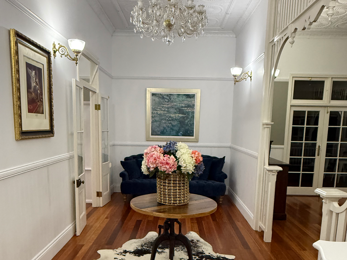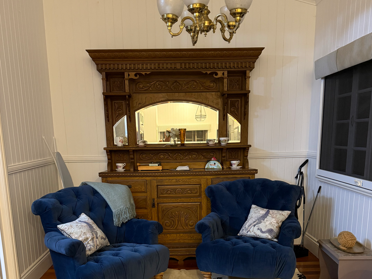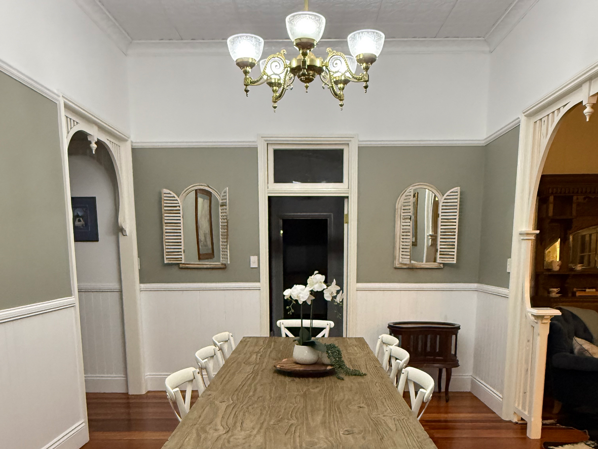 Historic home in the heart of the Montville hinterland set on the Balmoral Ridge with views to the Sunshine coast and hinterland mountain tops. Three minutes to the main street of Montville and cafes, shops, restaurants, IGA. Sporting a freshly painted French grey with antique white USA trims and balustrades to its exterior, fully furnished and staged inside, fireplace, large master bedroom with own bathroom, separate granny flat with separate entry and separate 81 sqm freshly renovated historic garage. Serene restful location.