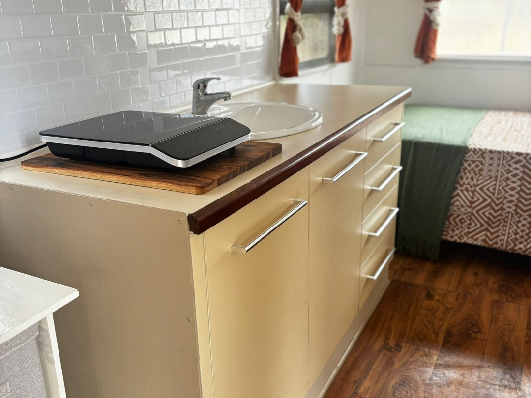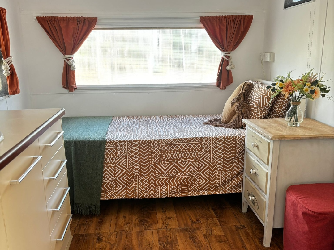 New king single bed, frij, hotplates, microwave and