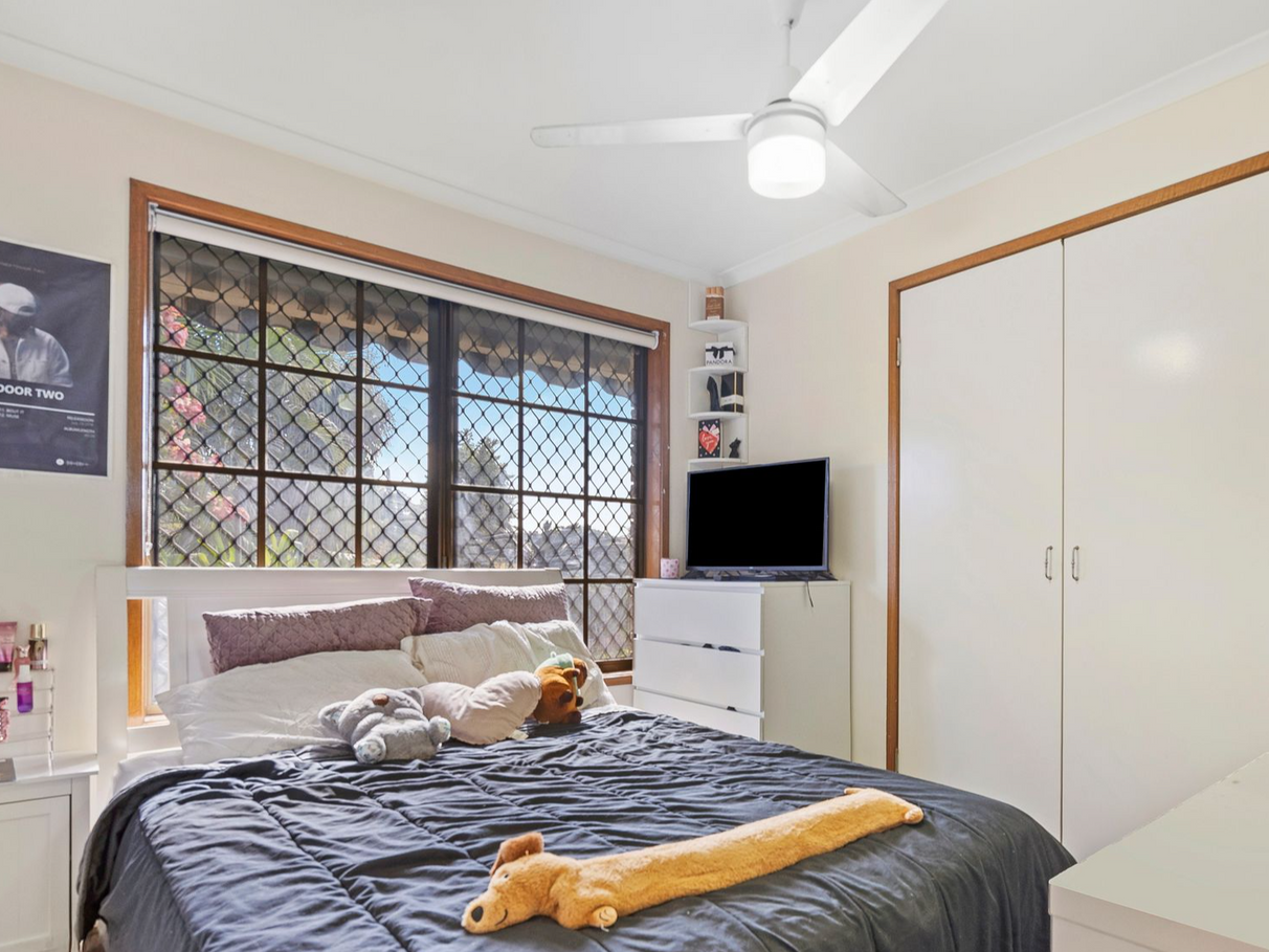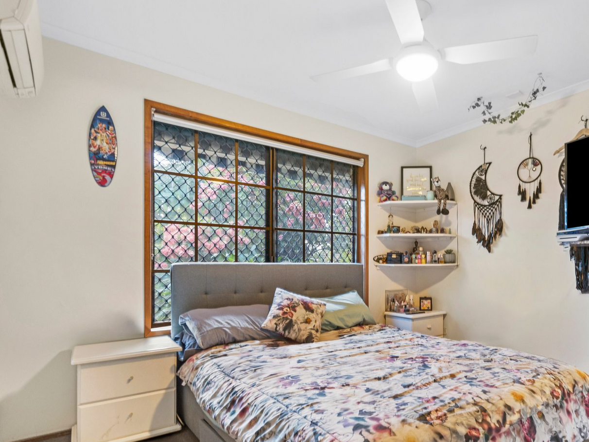 The home features 3 spacious bedrooms, all with built-in robes to all and ceiling fans to 2. The main bedroom also includes air conditioning and 2 wardrobes and security screens.