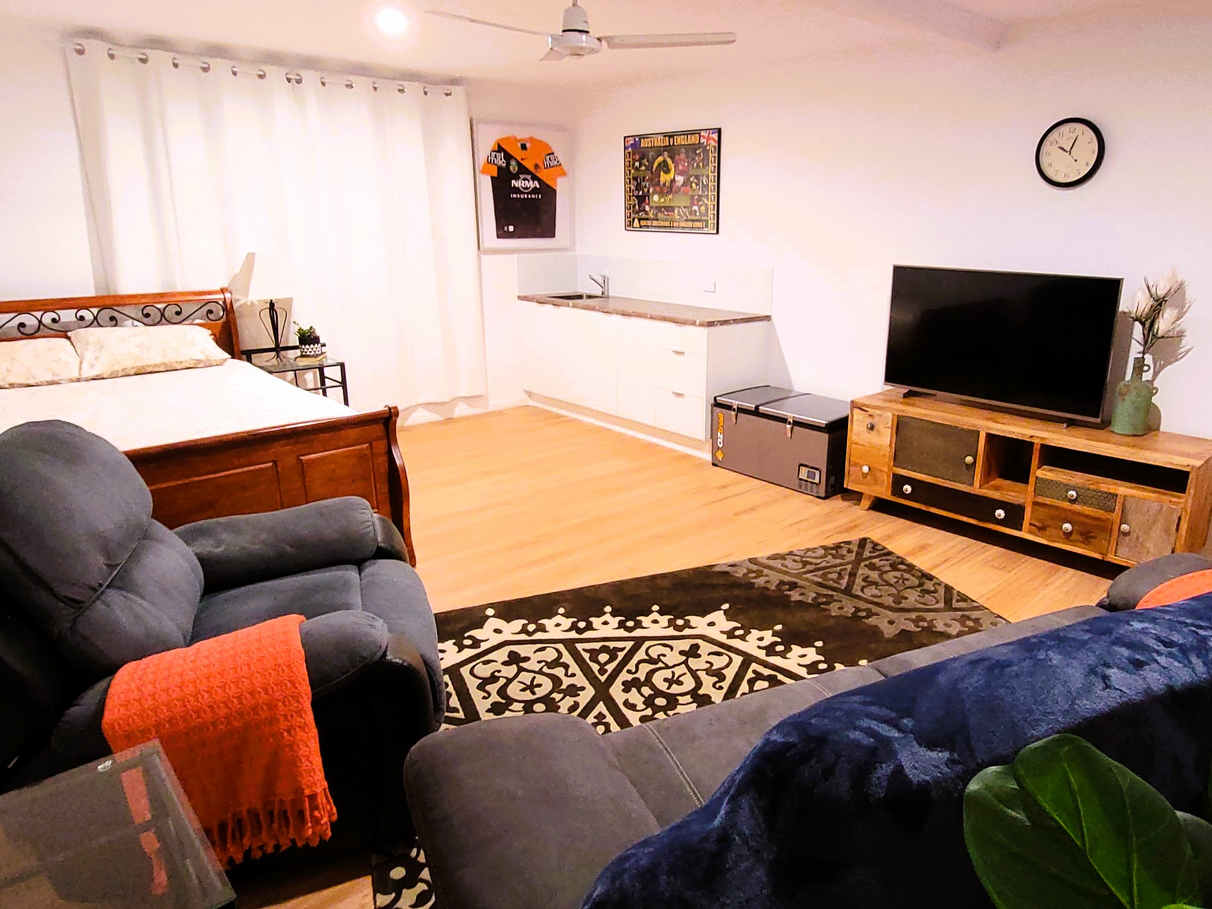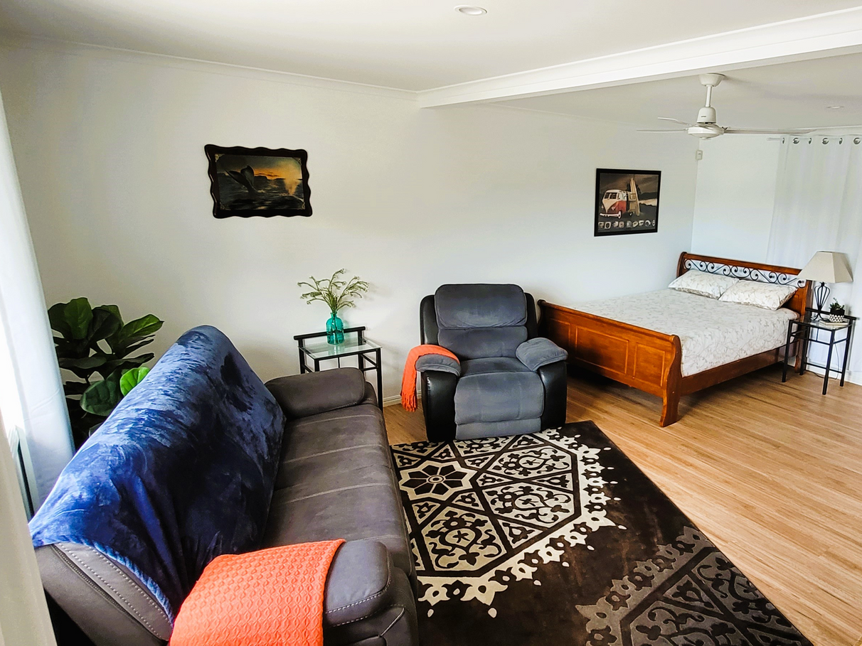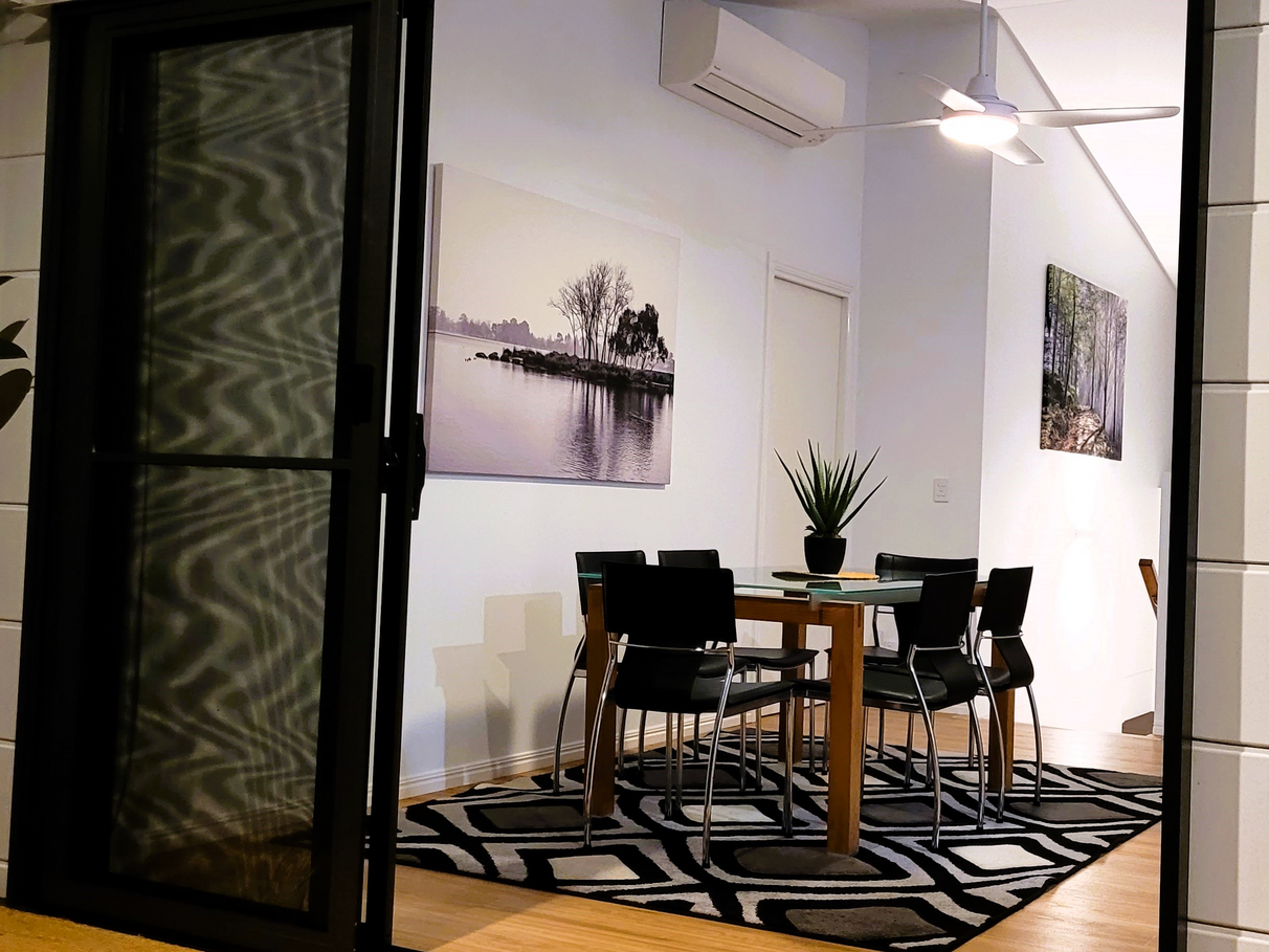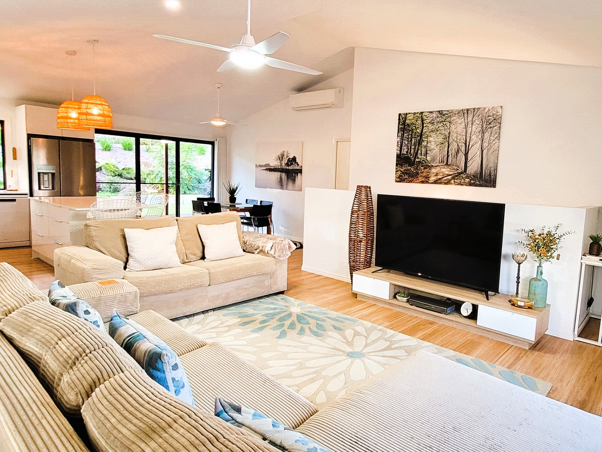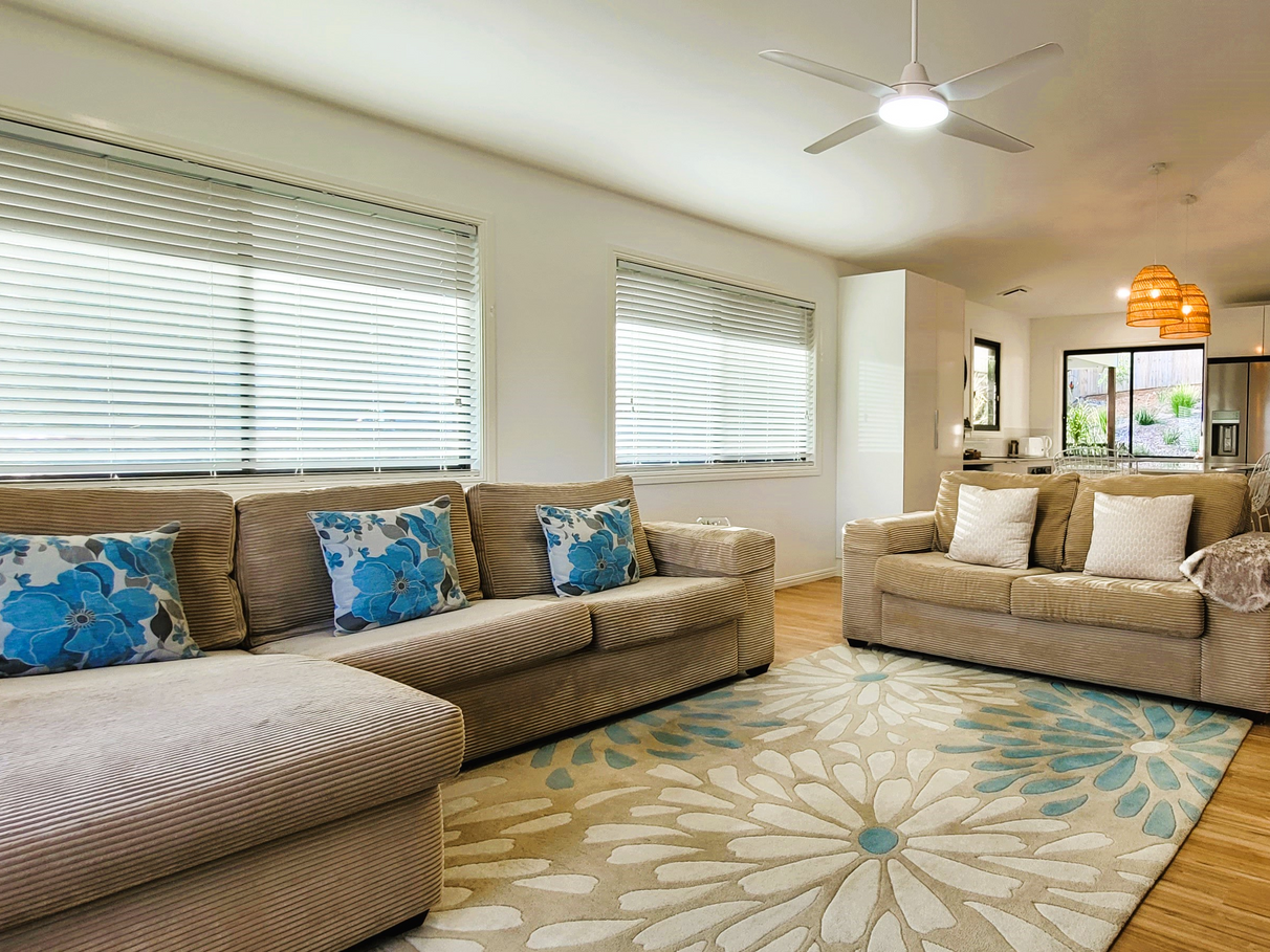 The Living room and Master bedroom both have air-conditioning or open the sliding doors and windows for cross ventilation throughout the house. The walls have insulation and there is insulated sarking on the roof with 2 whirlybirds.