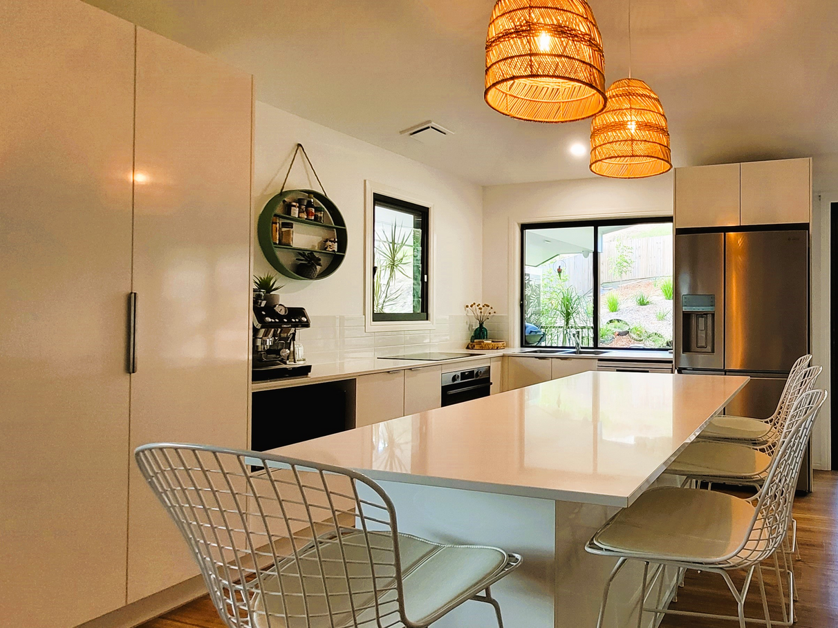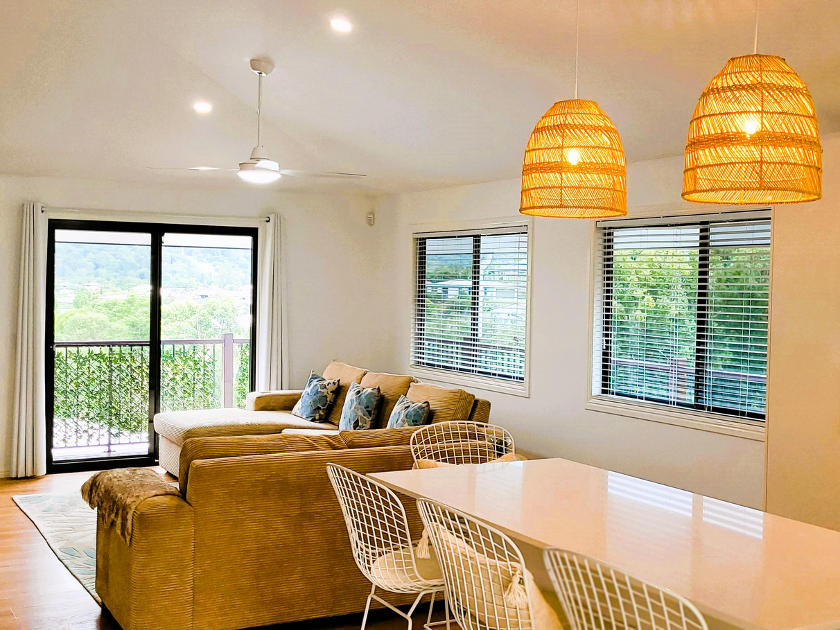 Located in a sort after area of Nambour, this 3 Bedroom home has a modern bathroom & ensuite upstairs with vaulted ceiling in the open plan living area, and a kitchenette Rumpus room, laundry/toilet/shower downstairs with double lock up garage. There is also a device charging nook in the living room and an IT nook in the hallway.