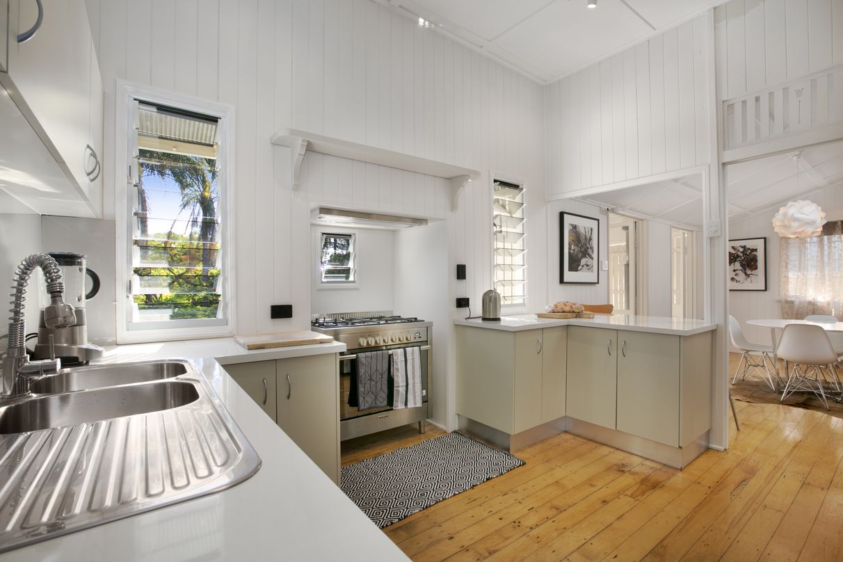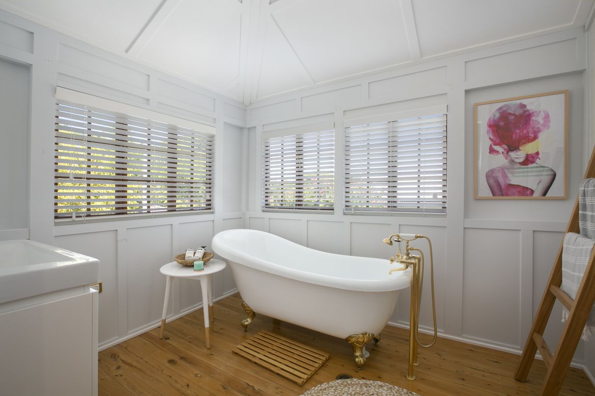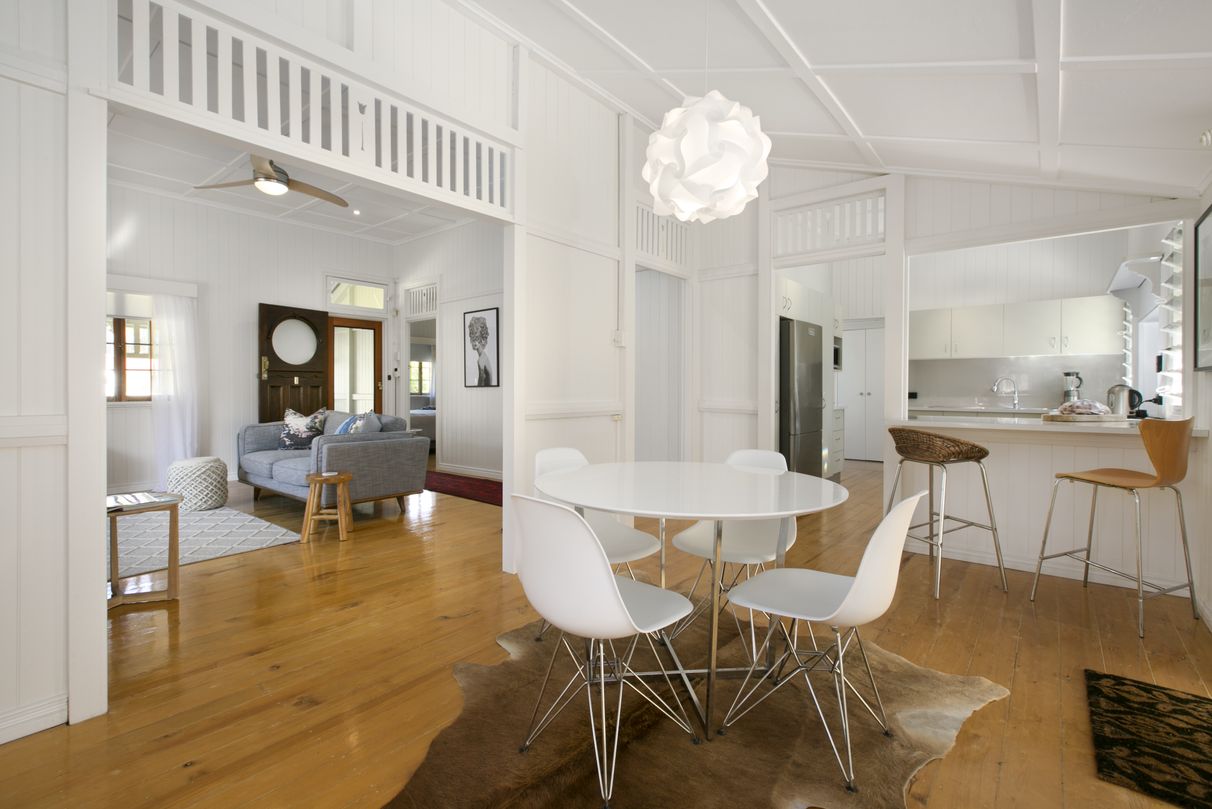 Traditional interior features include VJ walls/panelling, polished timber floors, soaring ceiling heights, stunning fretwork breezeways above doors and beautifully restored casement windows for a light-filled home that promotes natural airflow. Beautiful polished floorboards and crisp white hues add to the perfect mix of old-world charm and modern luxury.