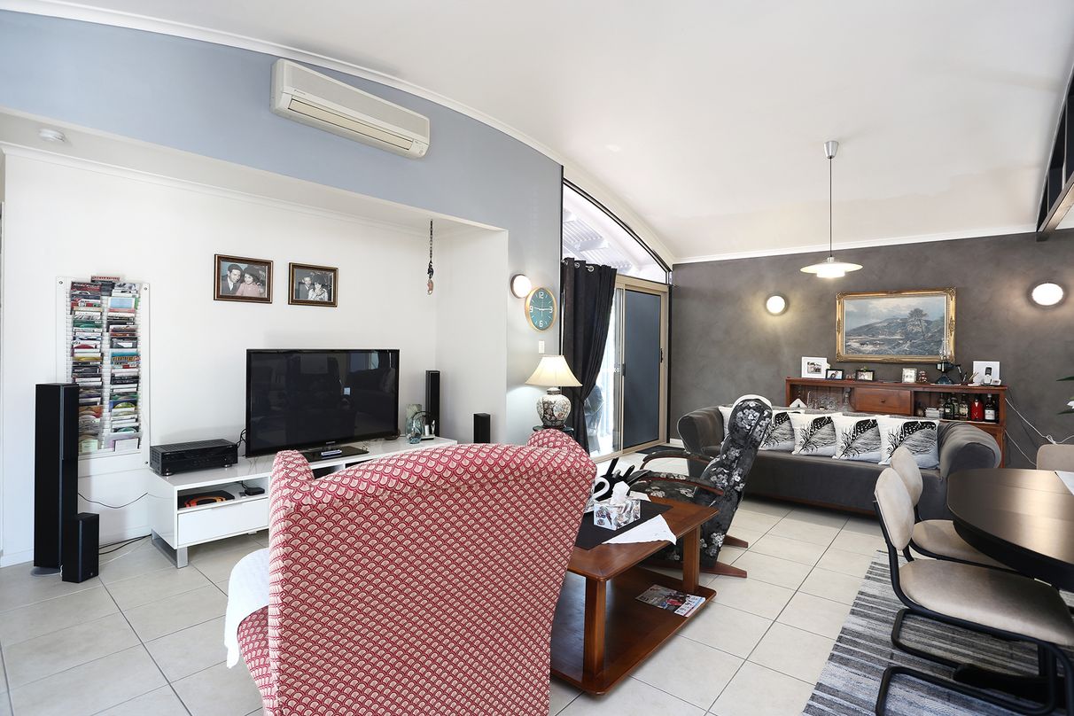 Beautifully looked-after, this residence offers a great opportunity for a range of buyers including 1st home buyers, young families, professionals, older couples and savvy investors. The stylish home is fronted by a fully landscaped colourful garden which invites you up the driveway and past lovely palm trees. Situated on a spacious 670 sqm block, offering plenty of off-street parking as well as a lockable garage to the right and side access to the backyard. Filled with lovely natural light throughout, the home sports stylish high rounded ceilings immediately creating a relaxing atmosphere inside. At the heart of the home sits the gallery kitchen, sporting ample storage, quality appliances and an open design. Overlooking the living/dining area which sports air conditioning for absolute comfort all year round.