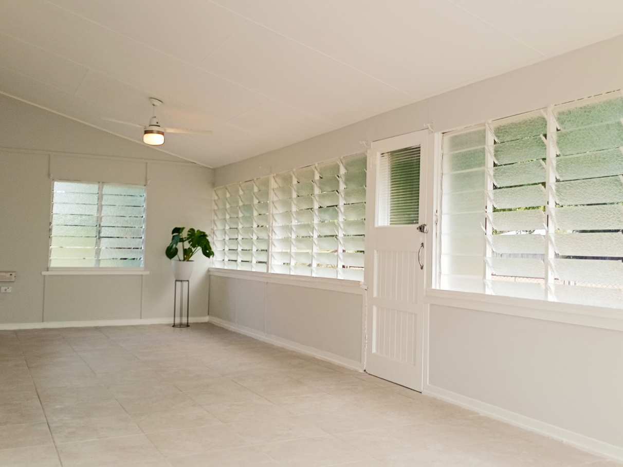 Entering the home you will be greeted by a light filled and spacious air conditioned lounge and living area. The wrap around louvered window feature maintains the homes air flow through out. Fully tiled through to the open plan kitchen with plenty of cupboard spaces and a practical walk in pantry adds to the ample storage solution. The air conditioned dining area, just like the rest of the home is bright and free flowing. Off the hallway are the four bedrooms, all but one are air conditioned. All have built in wardrobes and has had new hybrid flooring put in. To the back of the home as you exit out to the covered pergola area is a freshly renovated bathroom. Further out sits a decent sized powered shed which also houses the laundry. The home sits on a quarter acre parcel with a neat, low maintenance garden surrounding the home. If its the self sustainable option you seek then there is an established vegetable garden and water collection facility in place.