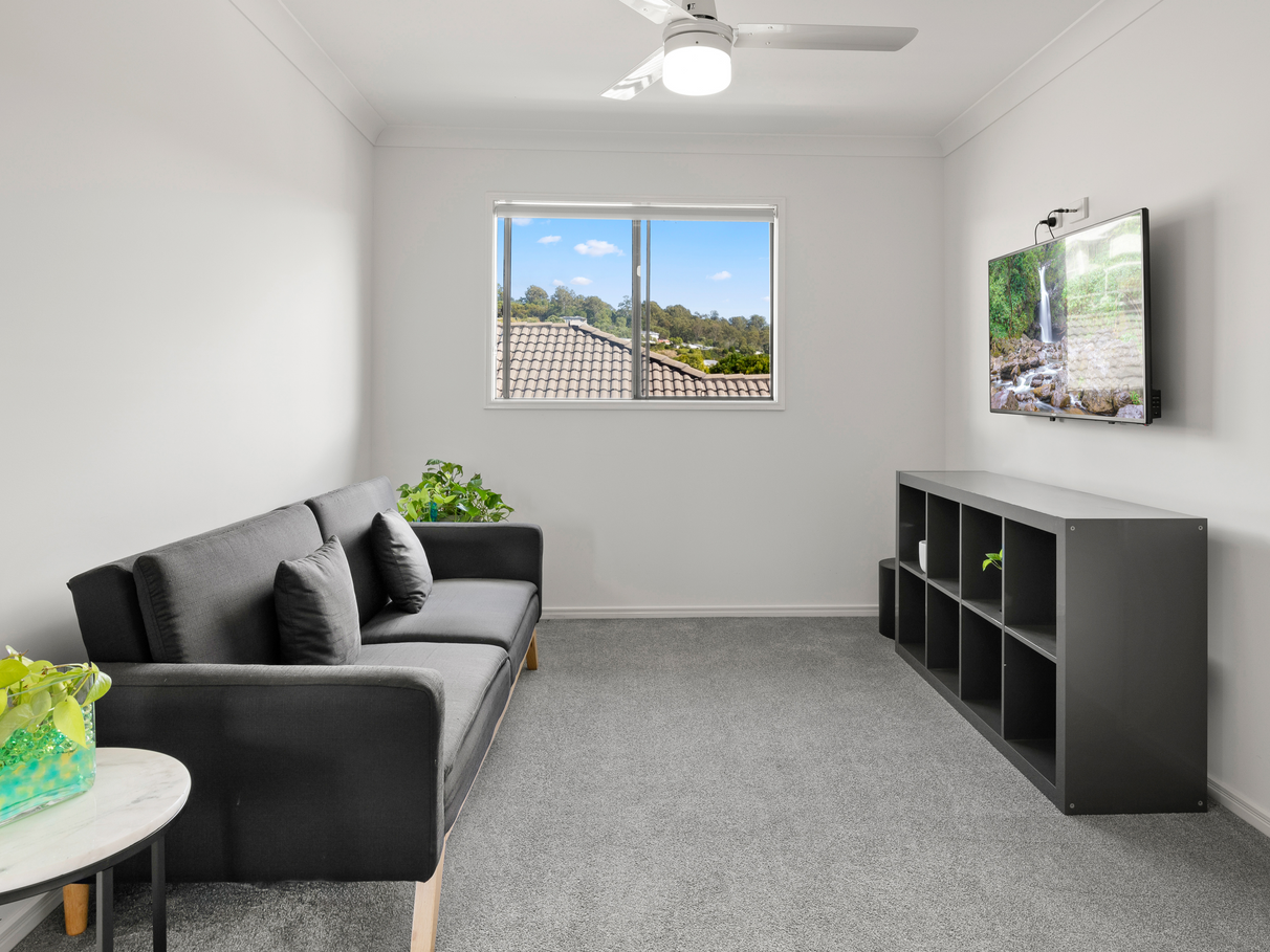 Upstairs, you will find a third living indoor area. The master suite enjoys a walk in robe, ensuite, parents retreat and private balcony with stunning views of the hinterland allowing you to unwind in total bliss. The three remaining bedrooms are serviced by a two way bathroom with the 2nd master room boasting direct access.