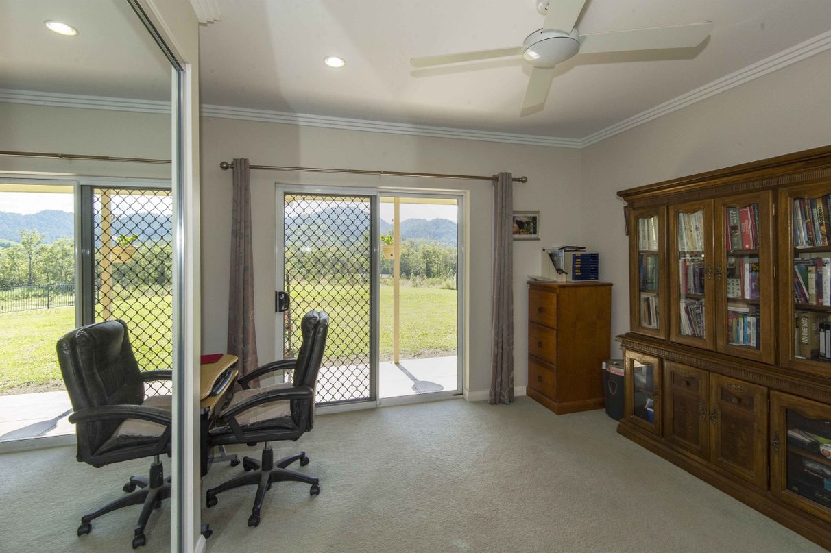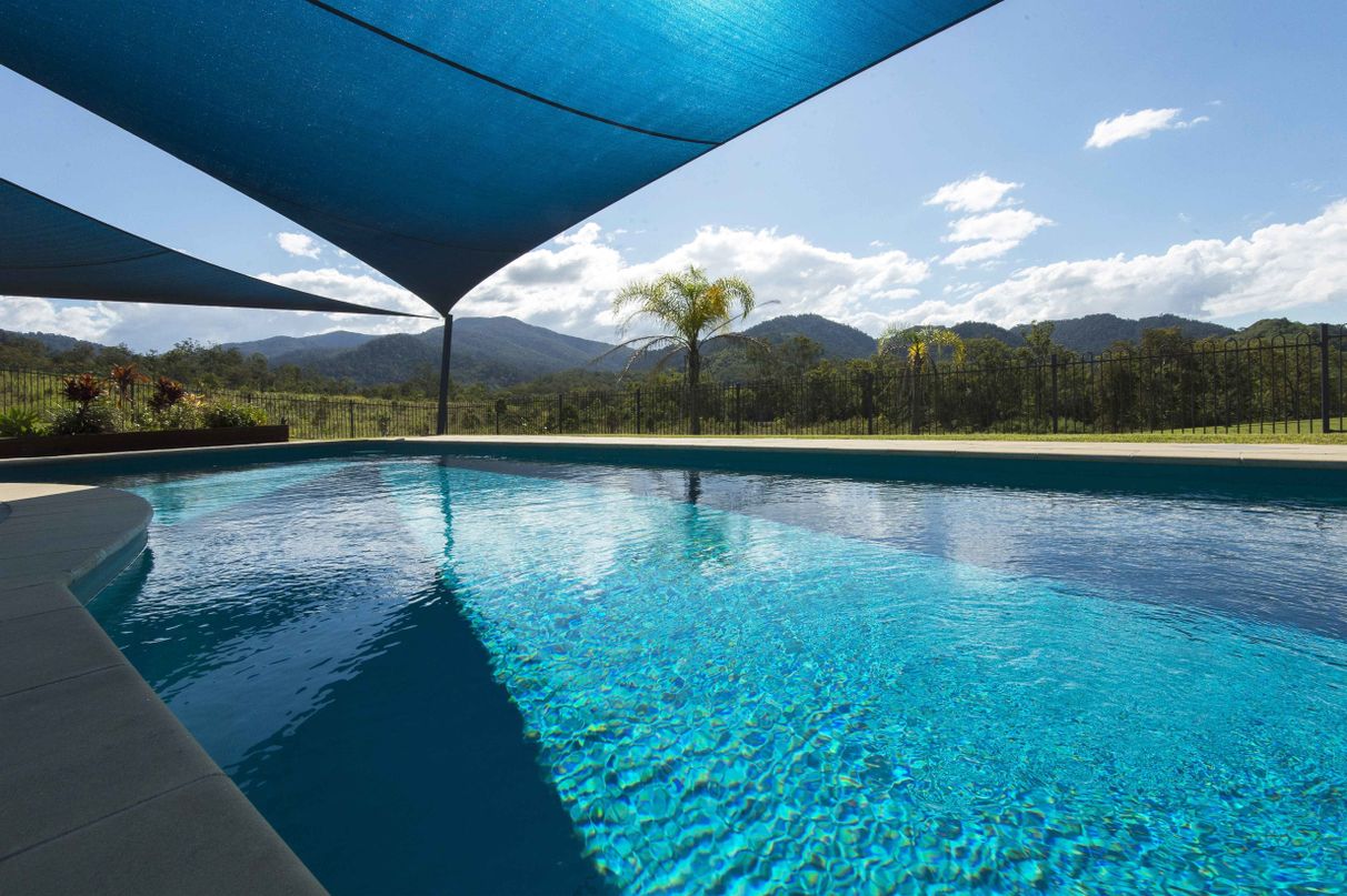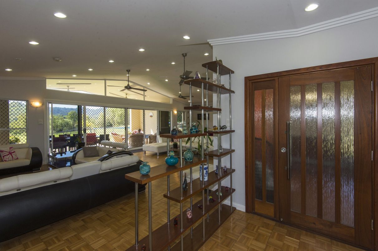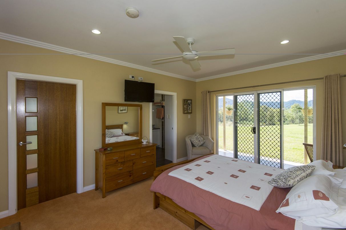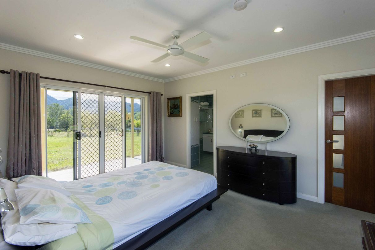 HILL HOUSE – Built high on a hill in a quiet corner of the beautiful Pioneer Valley at Gargett, near Mackay is this architecturally designed 4 bedroom home with separate one bedroom granny flat, workshop and more. Environmentally designed to be cool in summer and warm in winter this spacious home has four bedrooms, two with ensuites and Walk in Robes, separate family bathroom with spa, a sunroom, a large kitchen-dining-living area plus a spacious patio overlooking the in-ground pool in a resort style setting. 5 acres total land area. 500 sq metres under roof. Solar hot water systems plus a 4.2 KVA solar system service this rendered block built home along with many other high specification features.