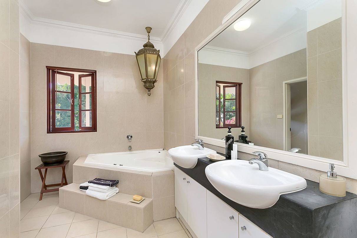 Three of the five bedrooms are on the upper level. Two have ensuites and the third which is the master bedroom features a jacuzzi as part of the sumptuous fitout. The other two bedrooms are on the lower level and share a large family-style bathroom.
