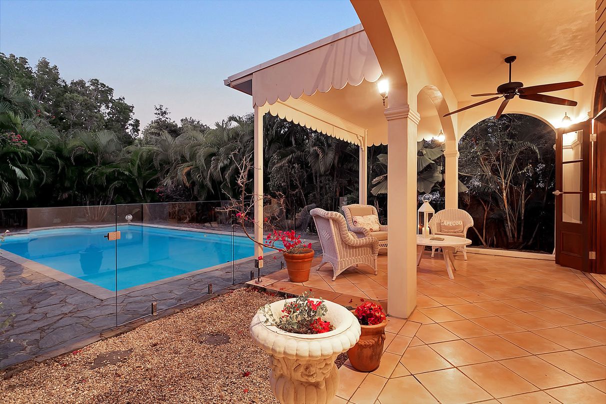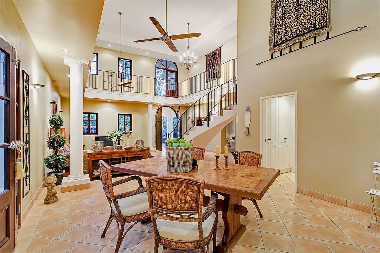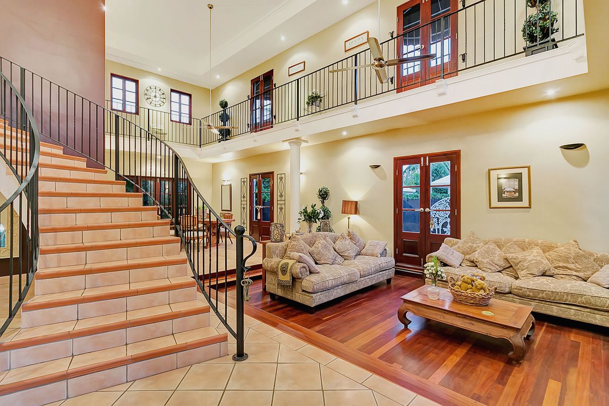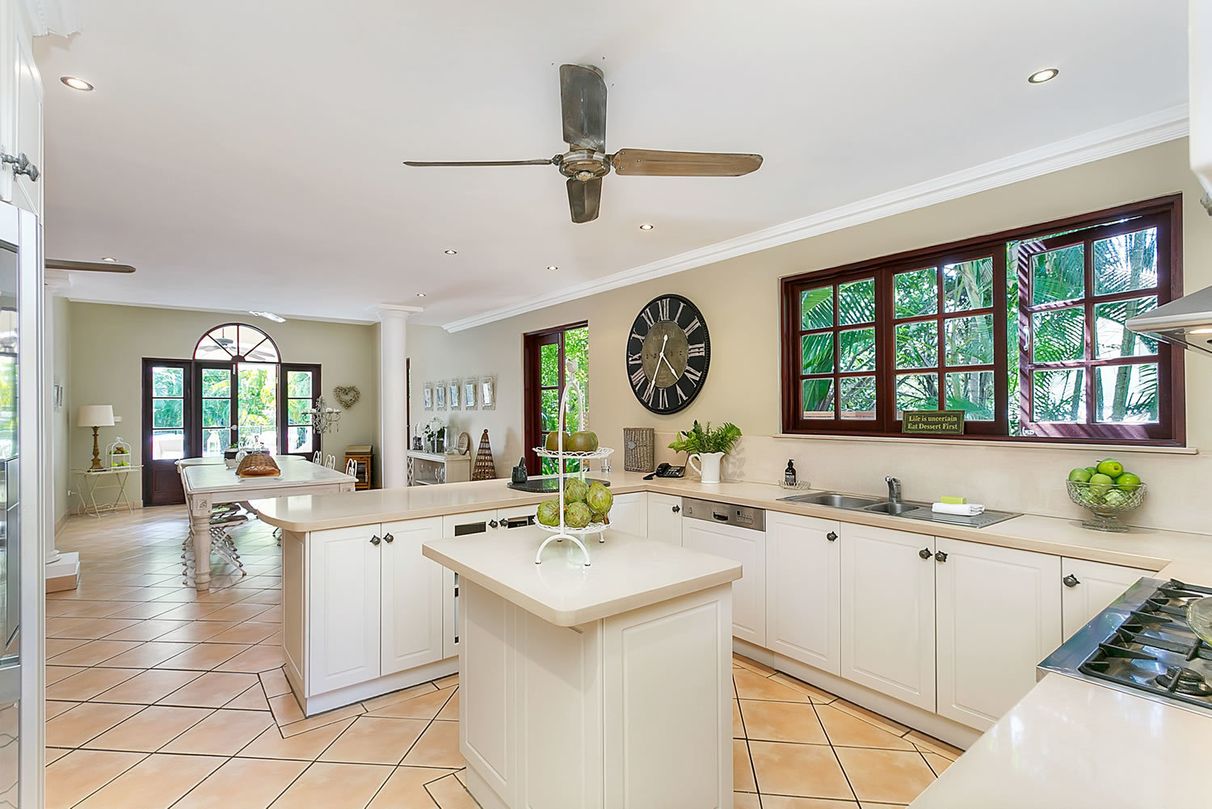 Sprawling entertaining spaces flow outside through the kitchen and casual dining areas to the swimming pool and surrounding tropical gardens.