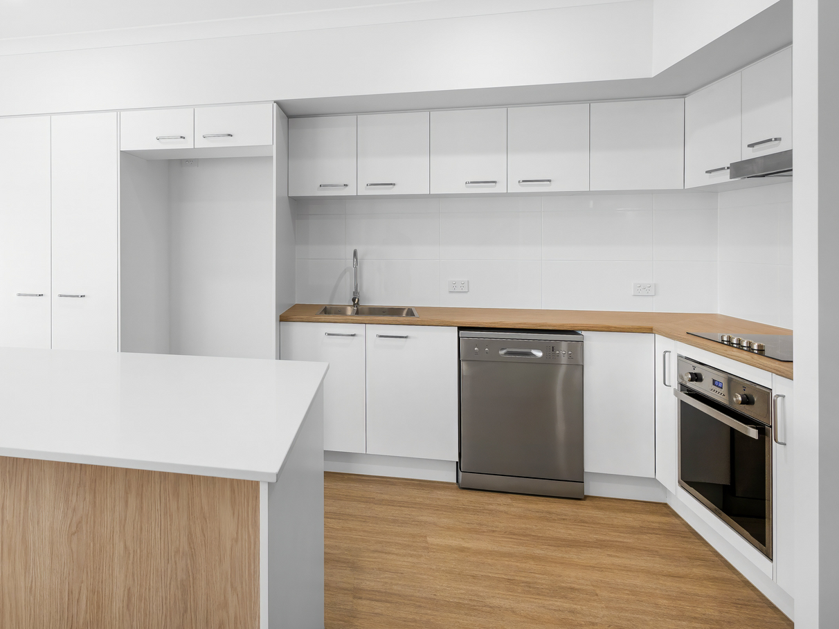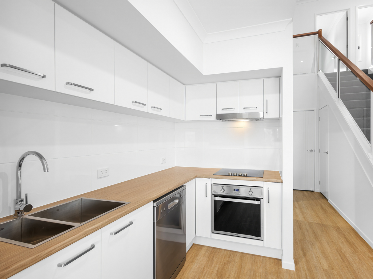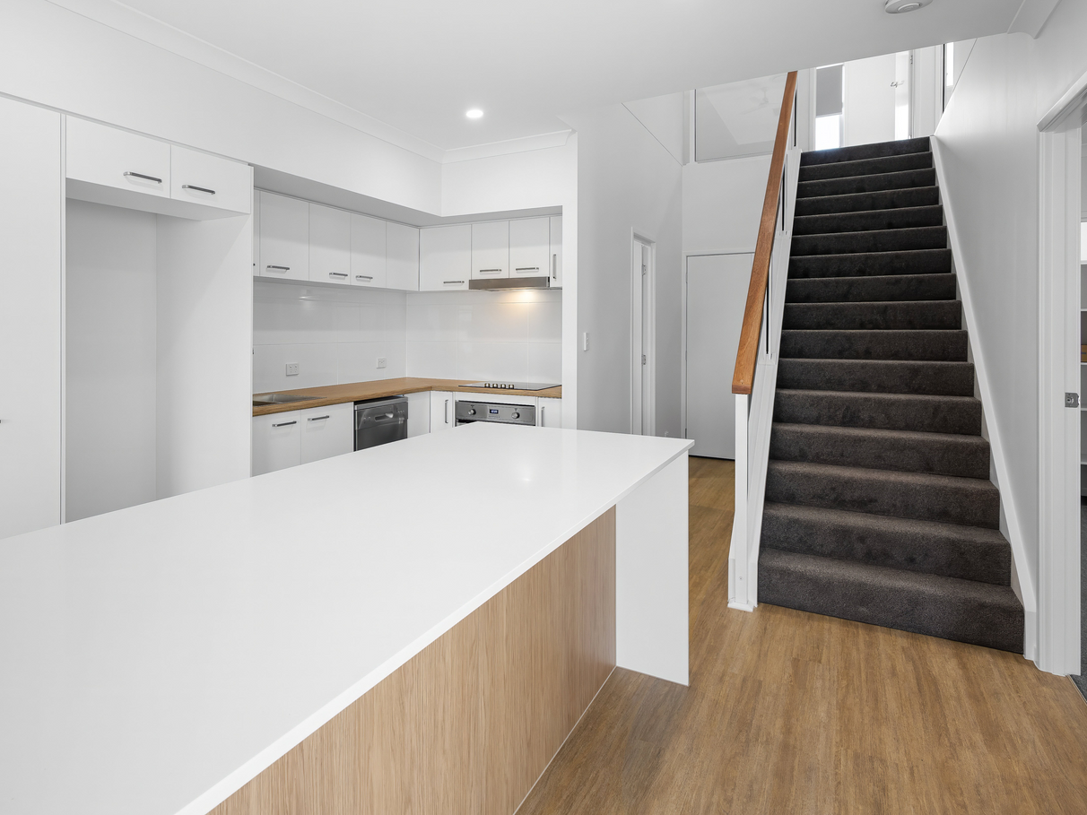 High-set, split-level build with no common walls (not a townhouse), single title, and no strata or body corporate fees.