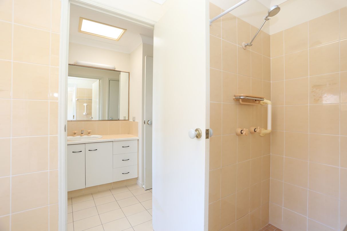 Roomy 3 bedrooms with robes, main bedroom has access into a two-way bathroom with separate shower room, separate vanity, toilet and laundry rooms.