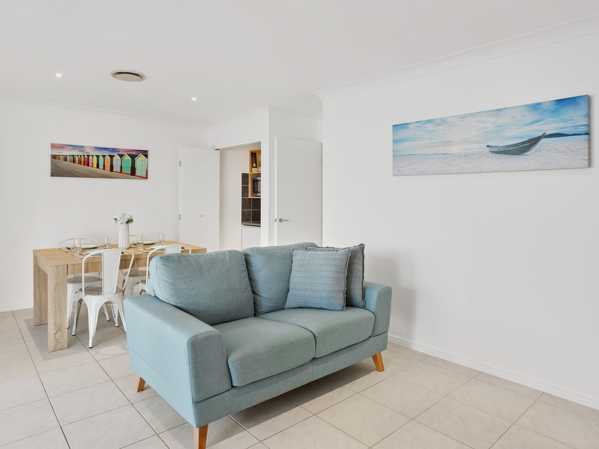 All the work has been done internally and externally to ensure low maintenance and easy living. Bottom level consists of a huge bedroom with a built-in wardrobe. Separate toilet and large bathroom with bath. Huge rumpus room/ potential 3rd bedroom with kitchenette which leads out to a beautiful hardwood covered deck with privacy. On the 2nd level consists of a massive open plan living kitchen dining area with vaulted ceiling. Living area leads out to a beautiful balcony with water views. Grand master bedroom with a spacious ensuite bathroom which has dual vanities and a spa bath. There is also a big half bath upstairs. Upstairs windows all have tinting and plantation shutters. With nothing left to do you can start to enjoy your new coastal life.