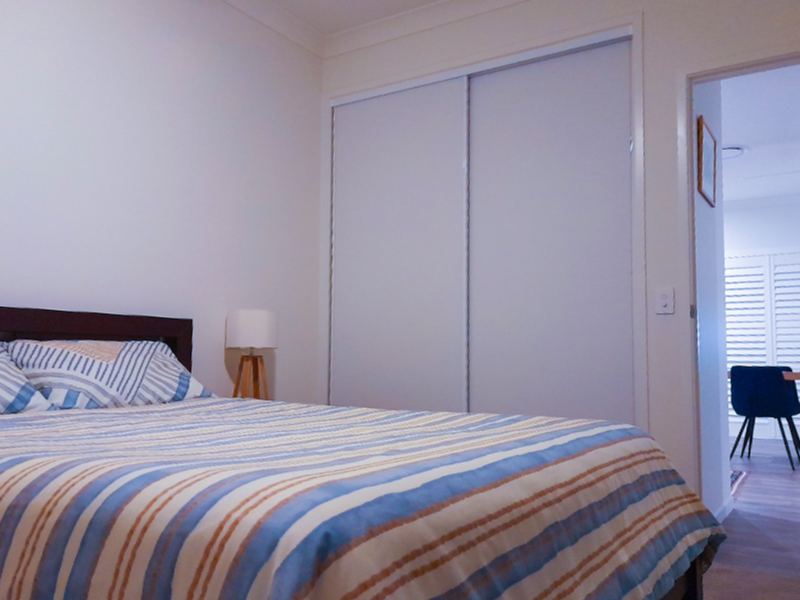 Just over 2 yrs old, north facing, free standing, corner property overlooking bushland, with gate across the road for walking path to golf course. Open plan living and dining with wood effect flooring and high ceilings. Two carpeted bedrooms plus study (3rd Bedroom), ensuite, BIR and 2nd bathroom. Fully equipped kitchen with stone bench tops and pantry. Double garage plus visitor parking. Front and rear shaded patios with lighting. Reverse cycle aircon, LED lighting, solar panels (production is double usage), no rates, no water costs. No stamp duty on purchase or exit fees on sale.