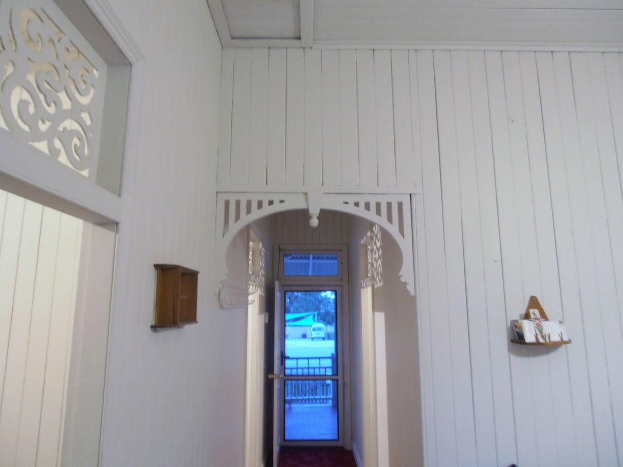 This grand old lady features a central hallway, wide floorboards, T&G walls & ceilings which have ornate fretwork ceiling roses & also fretwork & breezeways above ornate doorways. Window in the main house area are double hung & stained glass casement windows are on the verandah.
