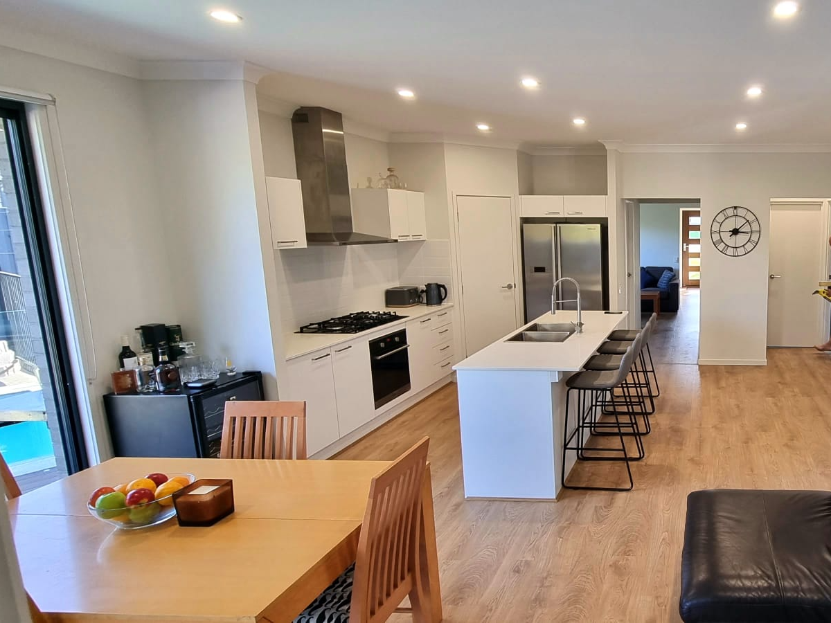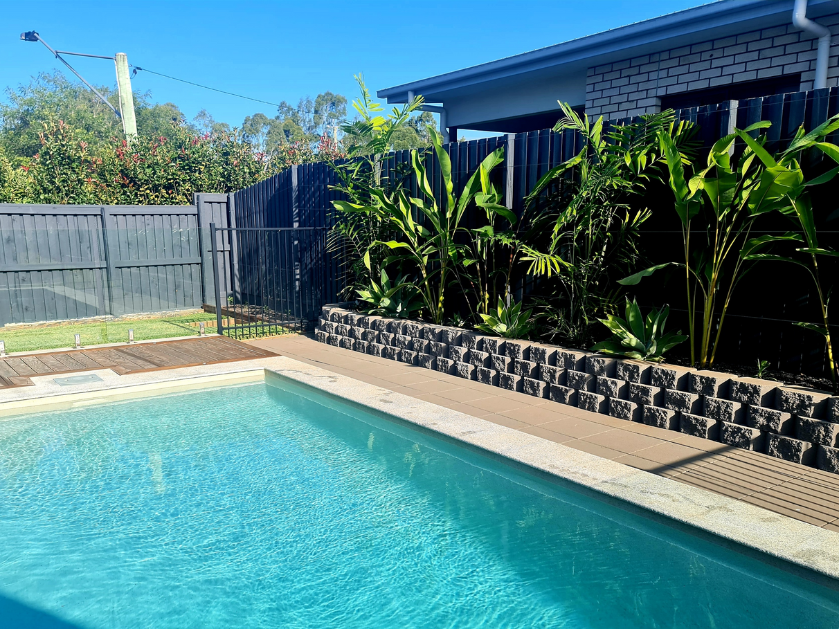 • Entertaining open plan living, beautiful Caesar Stone benchtop kitchen (center island, double sinks, gas hobs) with the family room flowing out via tiled Alfresco and Ironbark hardwood deck to the sundrenched 6m x 3m salt water pool and tropical garden.