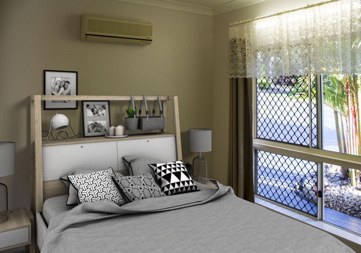 Featuring a large master bedroom, with a walk in wardrobe and ensuite with a double shower, new LED lights and block-out curtains. With 3 other rooms, 2 medium sized rooms and a smaller room perfect for a younger child or a children’s play room. All rooms have built in air conditioners and large wardrobes.