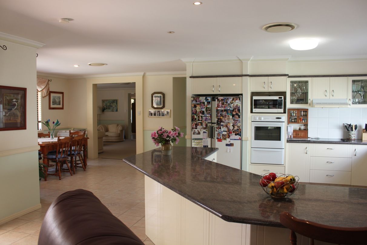 Lovely spacious home, open plan living with large solar heated pool in quiet cul de sac, set on a slight rise to catch the summer breeze. This home features 4 bedrooms, master with dual shower ensuite and large walk in robe. Formal Lounge and dining for the discerning entertainer and an outdoor entertainment area for the family BBQ around the pool. The home features a spacious family room, main bathroom complete with spa bath. For the entertainer a large kitchen to cater for an extra large family with glass display cabinets, large pantry and loads of cupboard space. No expense has been spared with ducted air-conditioning throughout the home, curtains blinds and flyscreens throughout. Fully landscaped gardens with rainwater tank. Double lock up garage with remote garage door and internal access to the house.