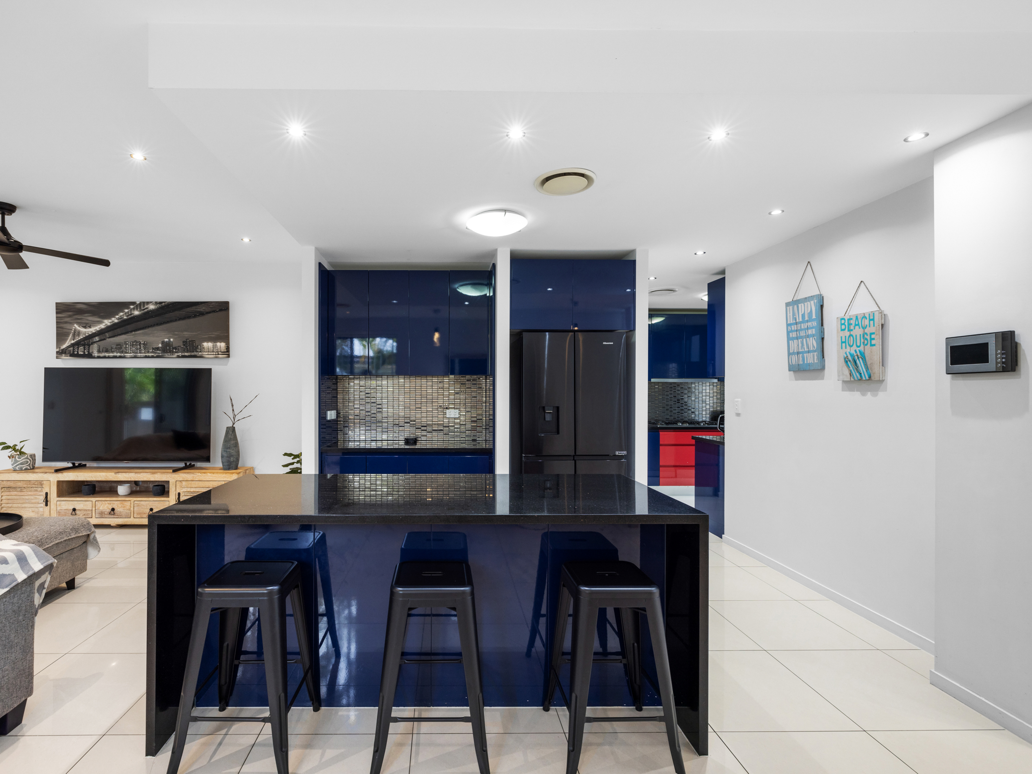 Now the geography: 3 mins to Robina Town Centre, a short bus ride to Varsity Colleges, 8-10 mins to Burleigh Beach, 3-4 mins to the M1 Motorway, 25 mins to Coolangatta Airport, 1 hour to Byron Bay, and 20 mins to the rainforest.