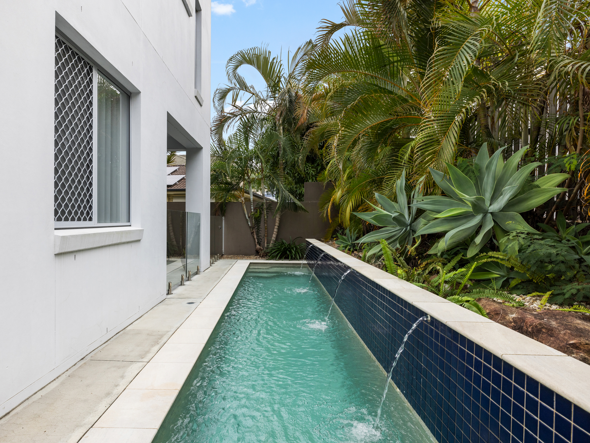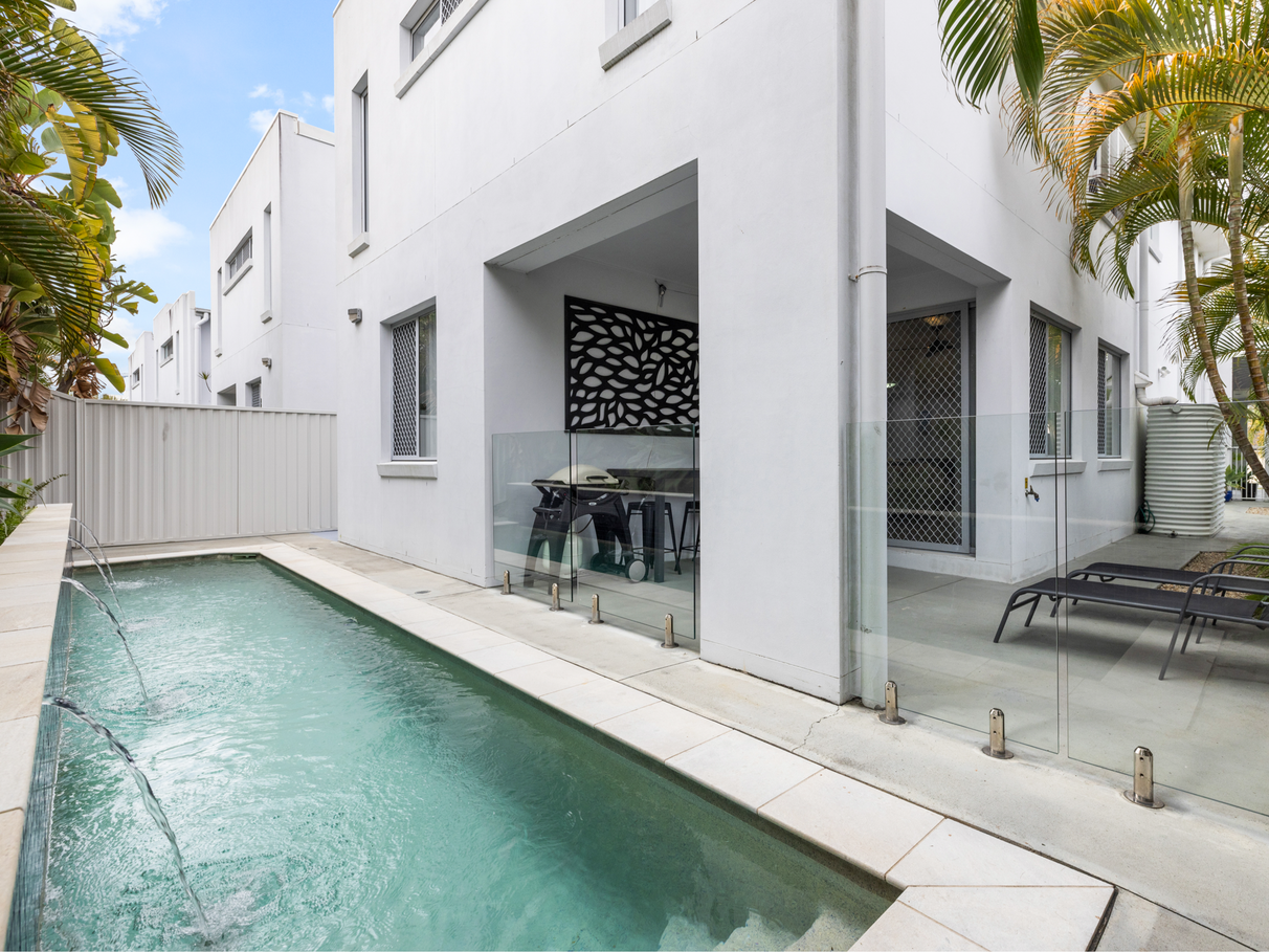 HIGHLIGHTS: 6 Bedrooms/3.5 Bathrooms/double garage/large 2 storey duplex Stunning swimming pool, low maintenance, fenced and well enclosed, and secure block. Very close to Varsity College, Bond University, Burleigh Beach, Varsity Central, the M1 Motorway, Coolangatta Airport and Robina Town Centre. Safe and friendly neighbourhood, reverse cycle ducted air conditioning, separate laundry, master suite upstairs with enormous ensuite and large open kitchen with all the modern touches. A stunning outdoor living that is very zen and perfect for entertaining. Quaint nook to read a book away from anyone. 3000 ltr water tank. No body corporate.