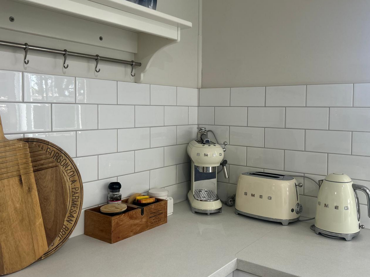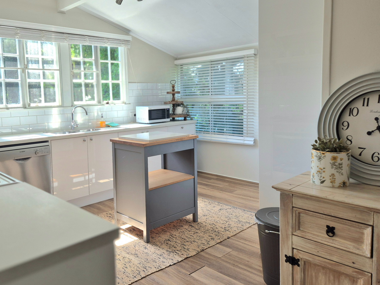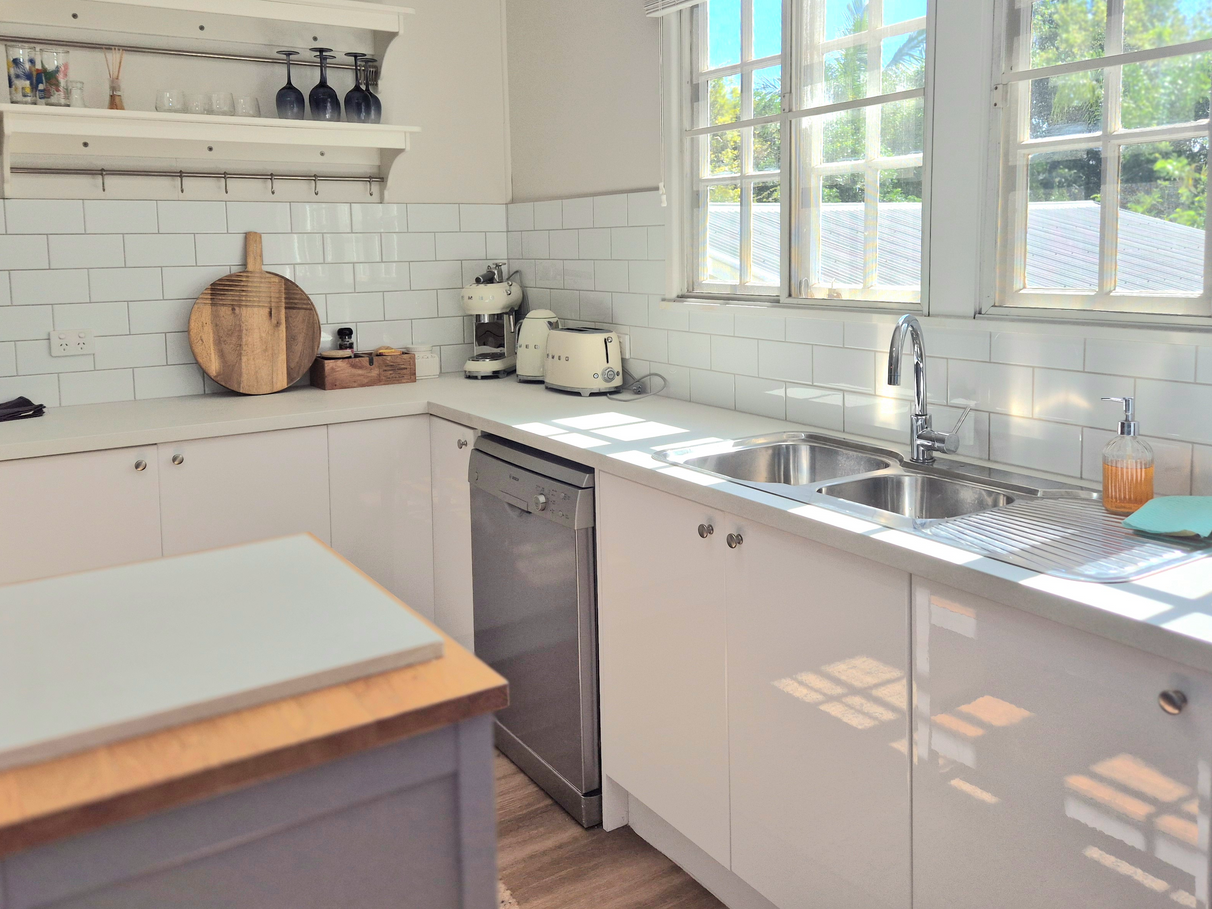 * Main residence with 4 bedrooms, modern kitchen, light-filled living area, and family bathroom