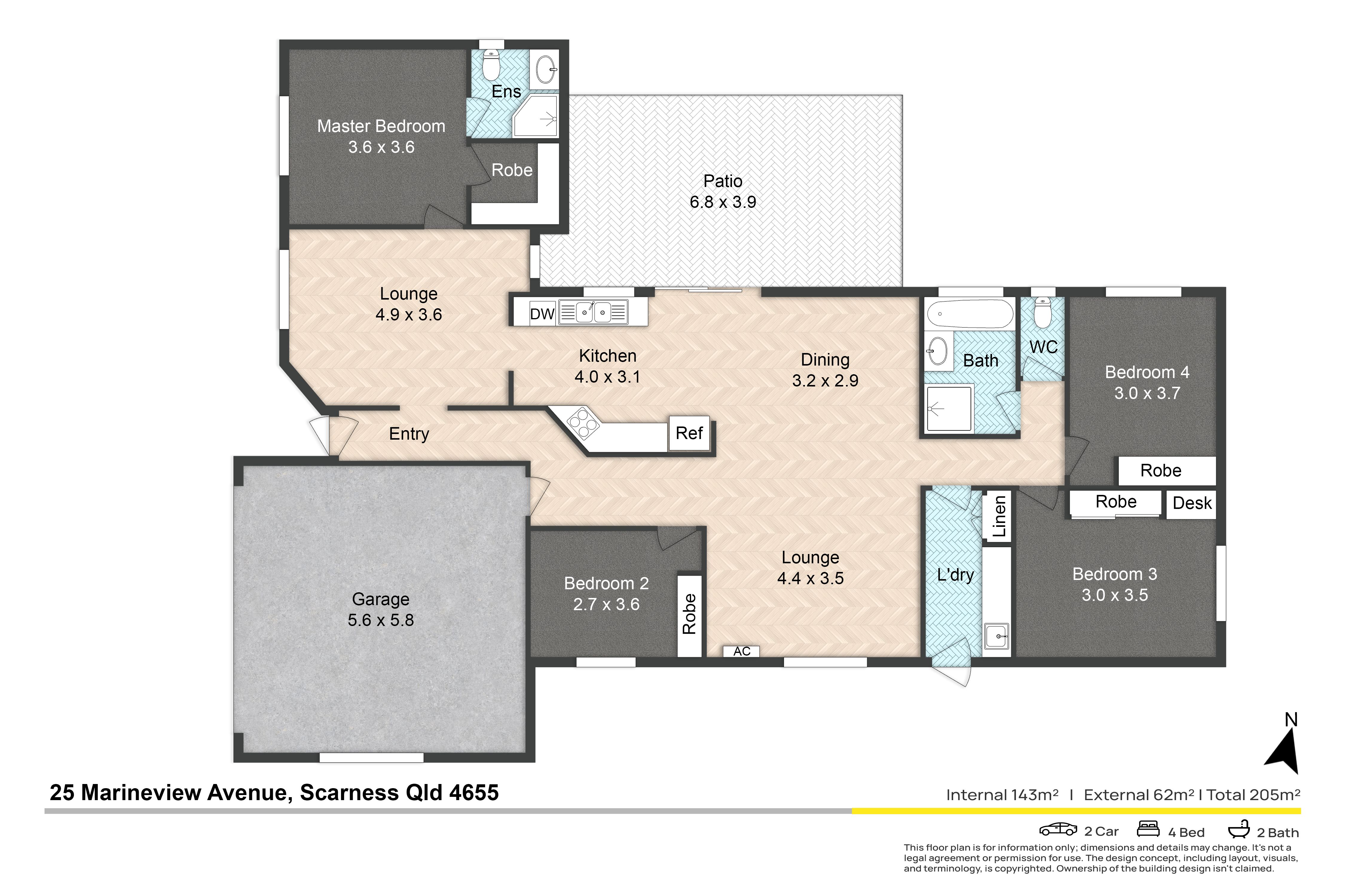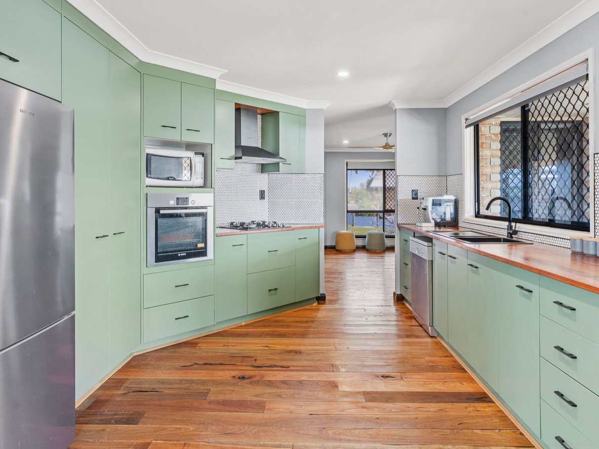 What a stunning redesign this is – beautifully renovated inside and out with all the modern touches and opened up for light-filled family living around an upgraded kitchen. Not just a contemporary family home ready to enjoy on its fully landscaped 600m2 (approx.) block, surrounded by beautiful parkland in this elevated pocket of Hervey Bay. Modern inspired tiling, rainfall showers and Messmate vanities transform the 2 bathrooms into gorgeous bathing sanctuaries, with satin finish hardwood floors, statement black tapware and a Mediterranean inspired garden of fruit trees. The free-flowing living areas positioned either side of the kitchen gives the growing family plenty of space to unwind, with separate zones for adults and children to enjoy their independence. The 4 bedrooms on a single level with a king-sized master bedroom featuring walking in robe and a lavish sized ensuite, tiled to the ceiling for dramatic effect. An impressive array of enhancements ensures all the updates are complete including new LED lighting, day and night roller blinds, 60cm Avanti cook top and black stainless steel sink, outdoor living area and remote door double garage. Relaxed family living doesn't get any more enticing than this. Step inside and start living your best life in this radiant setting, a mere 10m walk (1.2klm) to Beachfront and all the best restaurants Hervey Bay has to offer.