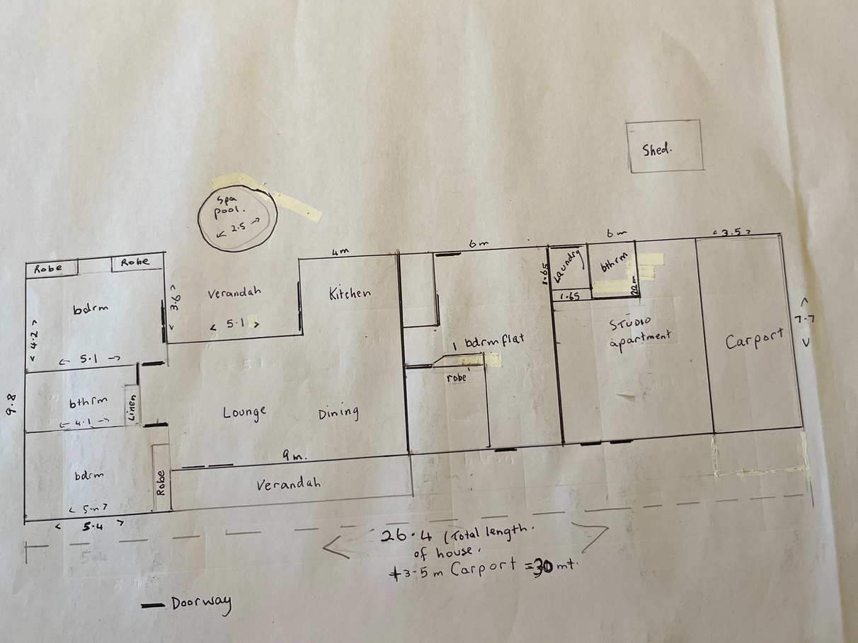 - Combined total of 4 bedrooms and 3 bathrooms, 2 separate car ports, off