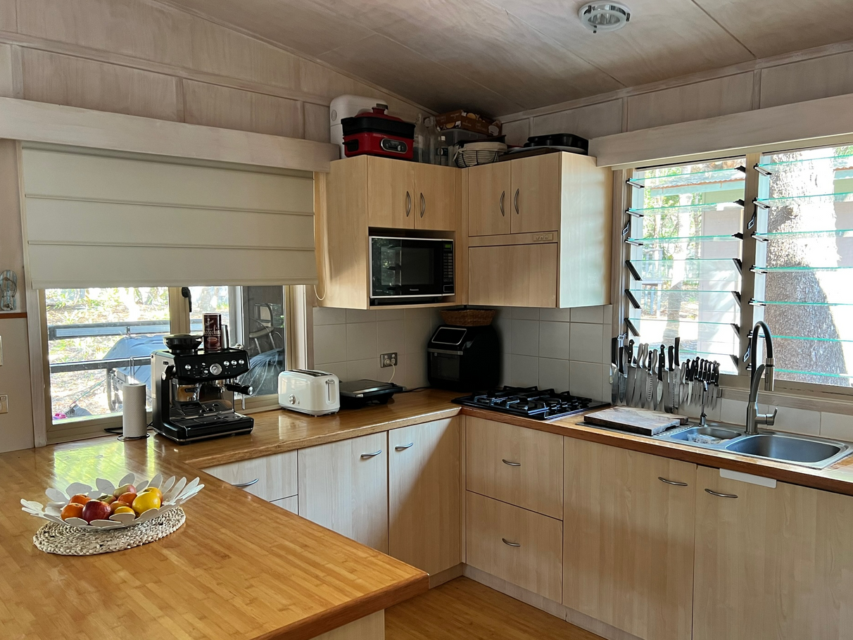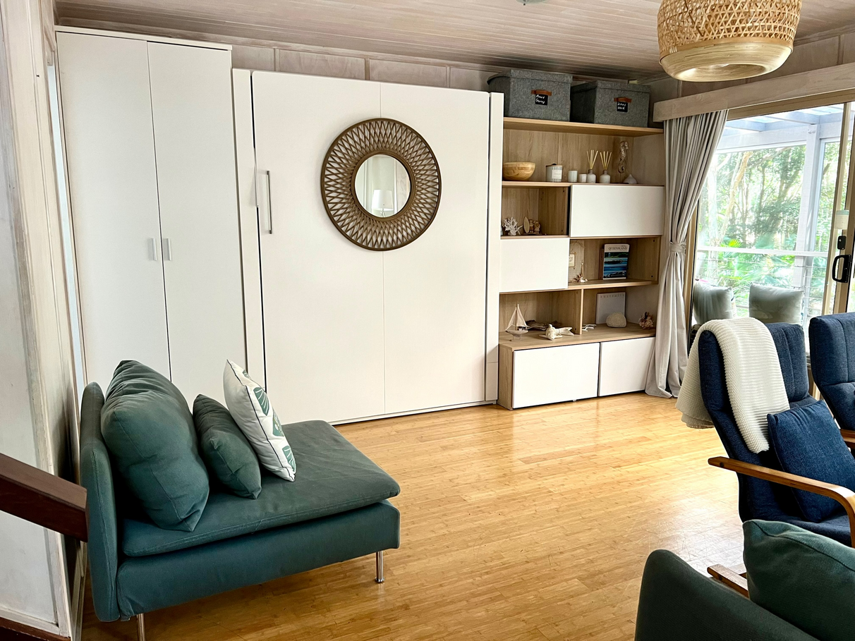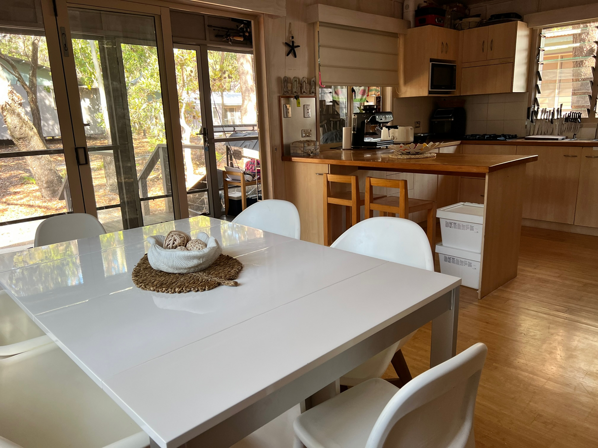 This well-loved “Off-the-Grid” Kitesnest Eco-Lodge Cabin located on South Stradbroke Island can host up to 12 guests. Perfect for big extended families. Only a 10-minute boat ride from Paradise Point.