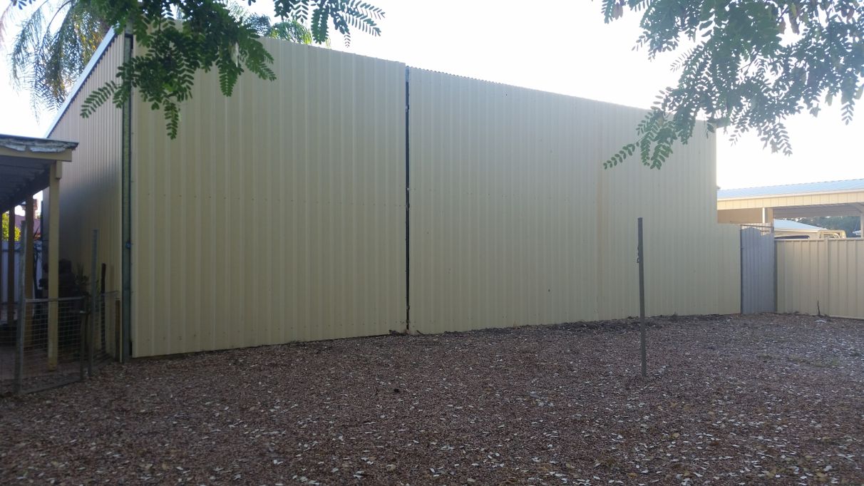 12 x 7.5mtr shed, powered and lighting, concrete floor.