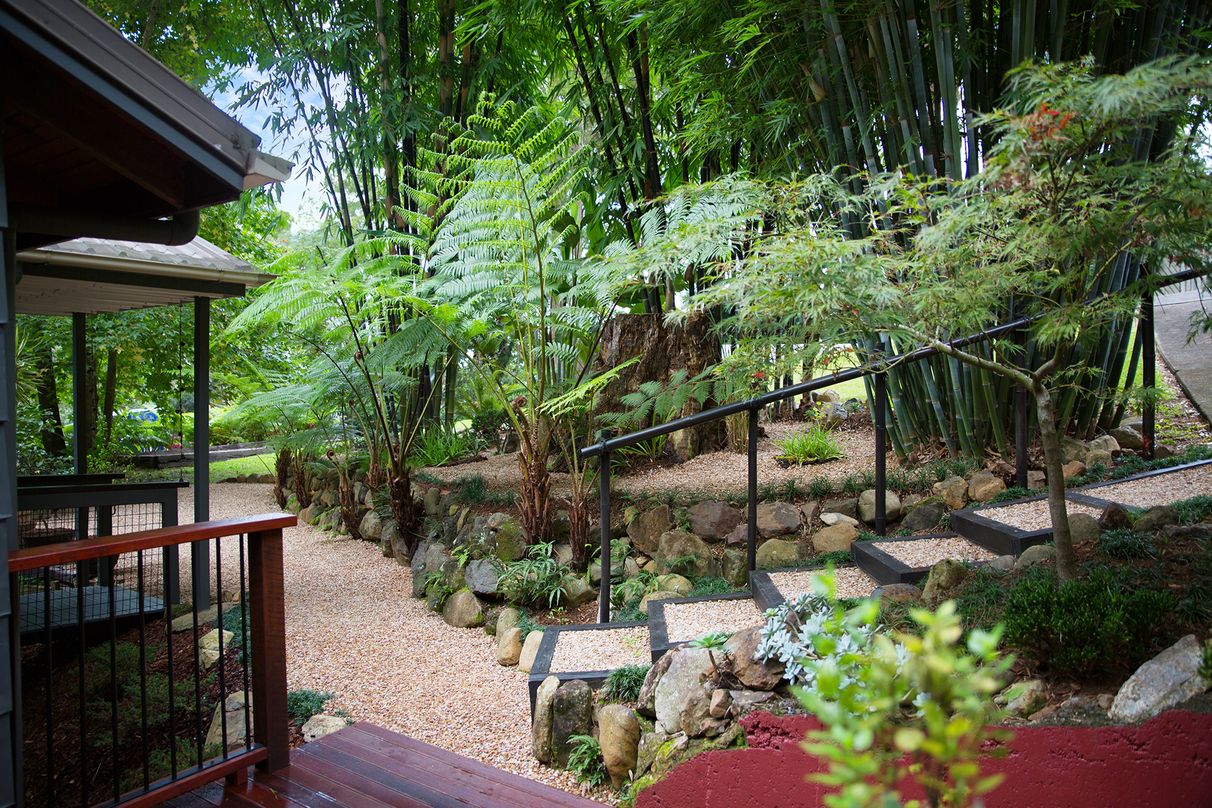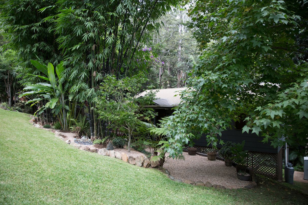 Majestically positioned behind lush, highly revered Black Timor (clumping) Bamboo & a variety of stunning maples; hidden from the road at the height of an enchanting, supremely private, tropical rainforest garden - stunning, meticulously and extensively landscaped grounds sprawling over 1,000sqm - with a seasonal creek and a native rainforest corridor backdrop that will absolutely take your breath away.