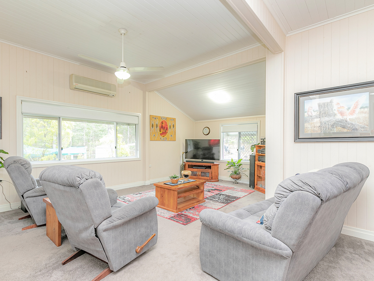 A gravelled drive from the home takes you 100m to a two room timber building on concrete stumps, which was previously used as an office and features power and air conditioning. This area gives approximately 70m2 of additional space. Attached to the building is a 12m x 7.5m powered shed with concrete floors and three lockable roller doors to access.