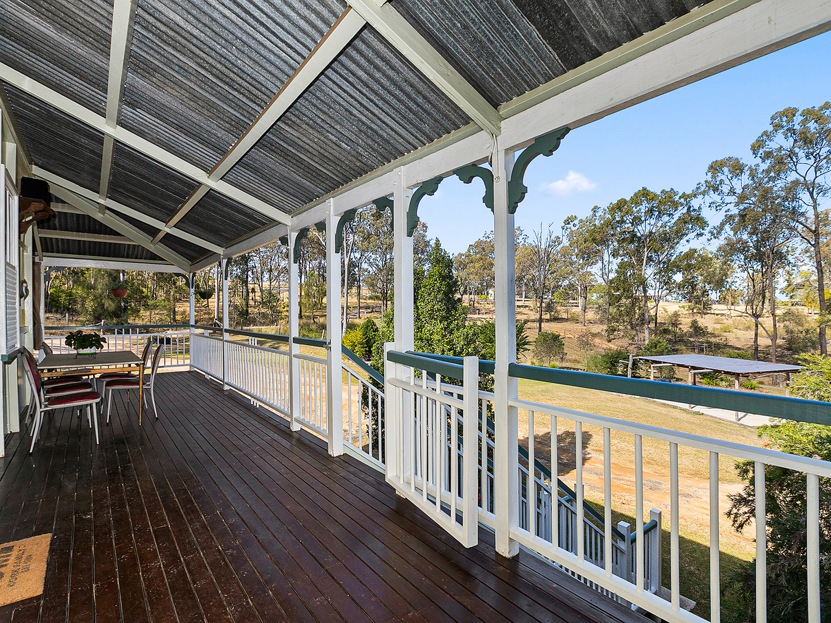 Perched on 10acres this quality high set character home offers many opportunities. Upstairs are three huge bedrooms all with French doors and high ceilings with the main bedroom offering a large wardrobe. The sunroom would be an ideal 4th bedroom or home office space. The fully renovated open plan lounge/dining and kitchen flows onto the large veranda that spans the side and entire front of the home. The kitchen features soft close draws and cupboards, a large pantry, fridge space for a side-by-side fridge/freezer, gas cook top and fan forced oven with separate grill.