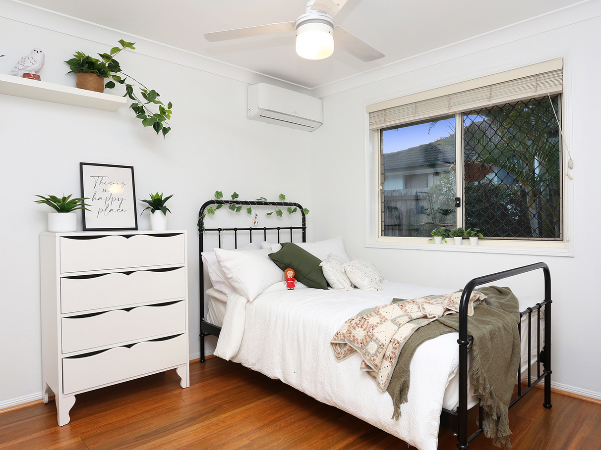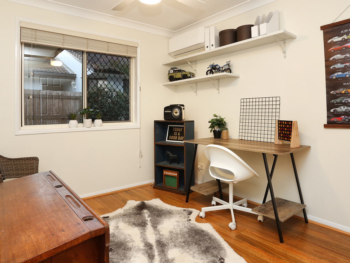 The covered alfresco area is perfect for those summer days and evenings and offers immense privacy as well as park views. The home is cool in summer and cosy in winter thanks to loft insulation, reverse cycle air conditioning and ceiling fans in all rooms. The garden features a practical shed which is large enough to safely store all the garden tools such as mower etc and serves as home to the recently replaced electric hot water system. There are solar security lights to the front and rear of the home in addition to security screens on all windows and a crimsafe front door screen.