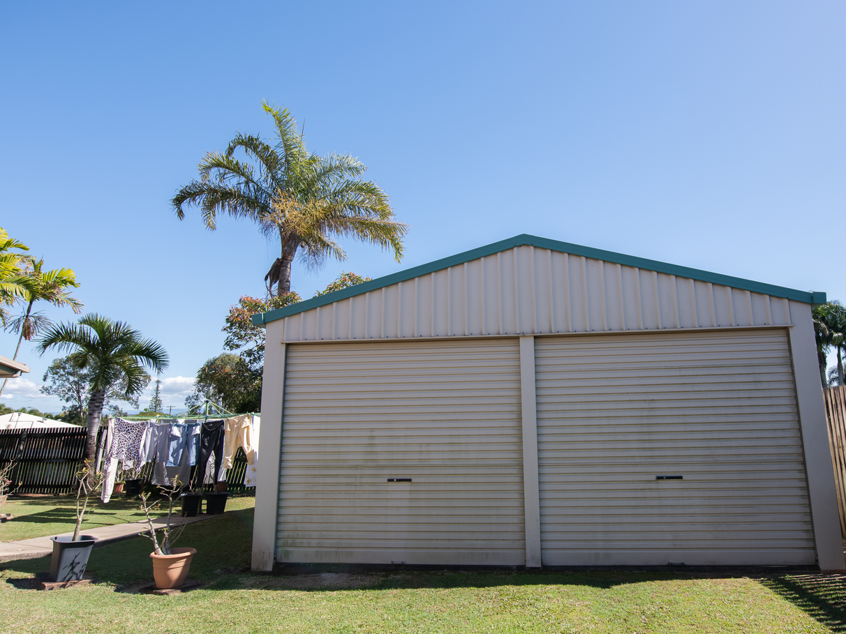 - 8x6m Double roller door shed with power in the back yard