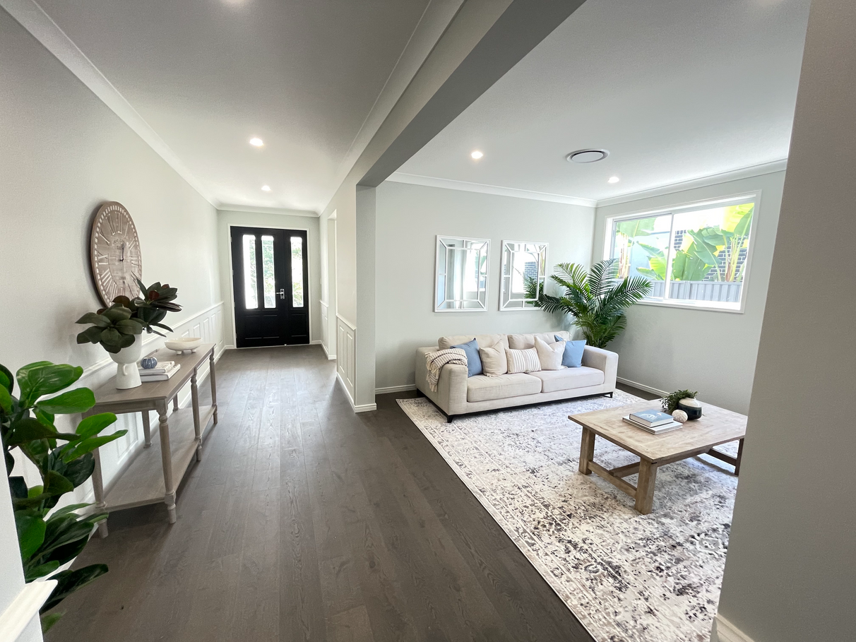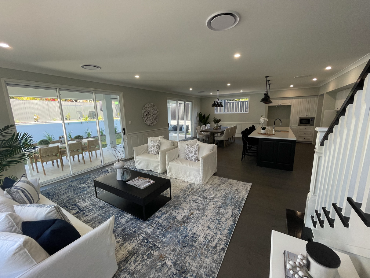 • Open-plan dining, lounge, and premium gourmet kitchen with stone benchtops, luxury upgraded appliances and finishes, large walk-in butler’s pantry with basin, spacing for wine or craft beer fridge and appliances, and extensive secondary walk-in shelved pantry