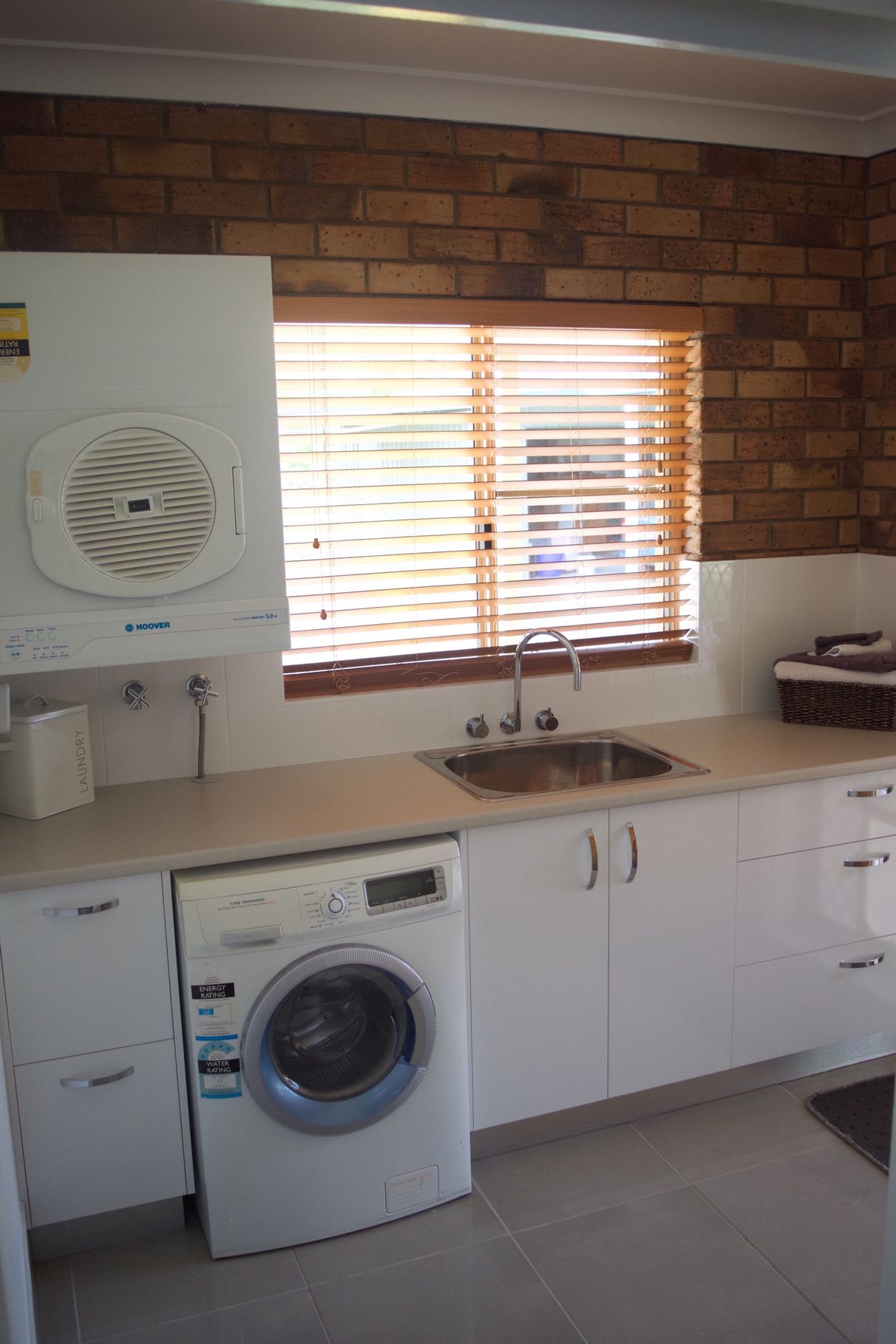 * Large modern kitchen with soft-close drawers/cupboards, Bosch pyrolytic electric wall oven, Bosch touch ceramic electric cooktop, integrated rangehood, dishwasher, and large utilities storage room.