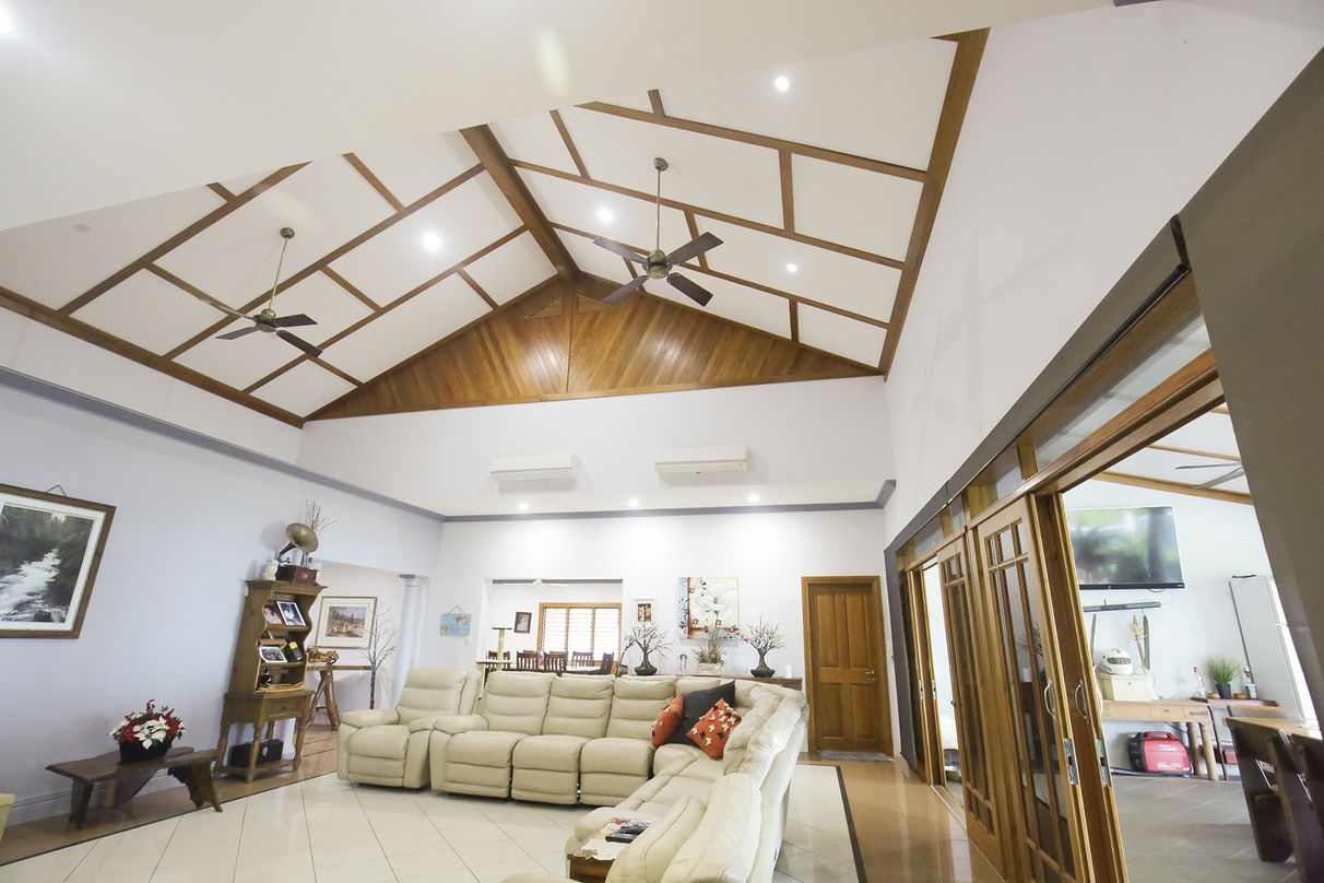 The effortless floorplan incorporates gorgeous natural light and a discerning colour palette complimented by tiled floors, extensive wooden features and high-end finishes and fittings creating a fresh and airy atmosphere throughout. Cleverly constructed to take advantage of the picturesque outlook, the home has been designed with large scale entertaining and spacious relaxation in mind. The generous lounge room showcases a stunning high pitched ceiling emphasising space, which opens out onto the covered outdoor tiled entertaining area creating an expansive indoor/outdoor arena for all to enjoy. Overlooking an 8ft deep inground sparkling swimming pool graced with oceans views of Dunk Island - a view you will never get sick of! The well-appointed timber kitchen is equipped with quality stainless steel appliances and benchtops looking out to the pool and ocean beyond.