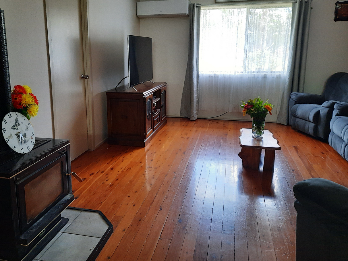 Split system and wood fireplace in the main living area and plenty of wood on the property to use