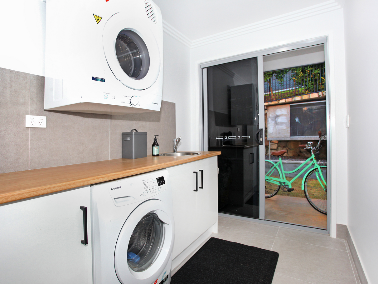 - Laundry with cupboard space and direct access to outside clothes line and turfed side yard.