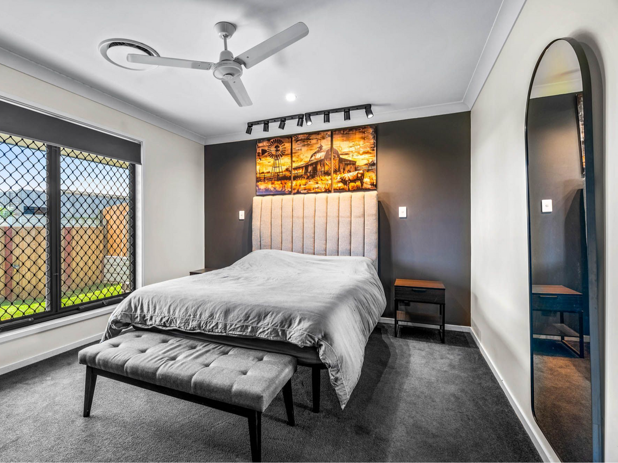 The remaining bedrooms are generously sized and thoughtfully positioned to ensure privacy and comfort for every family member. These rooms are serviced by a well-appointed central bathroom and a dedicated walk-in laundry, ensuring the home is as functional as it is beautiful.